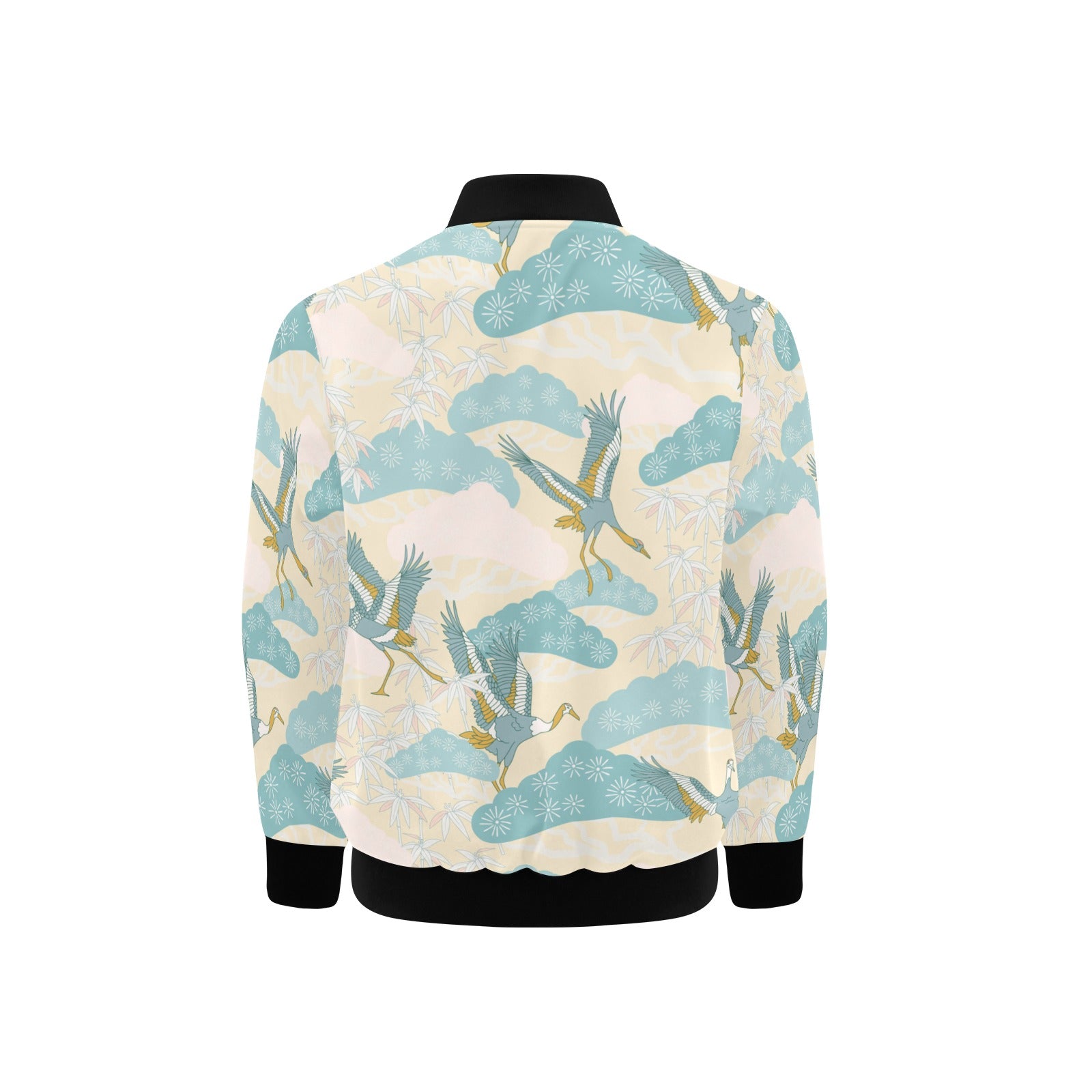 Bonsai bamboo stork japanese pattern cream theme Kids' Boys' Girls' Bomber Jacket