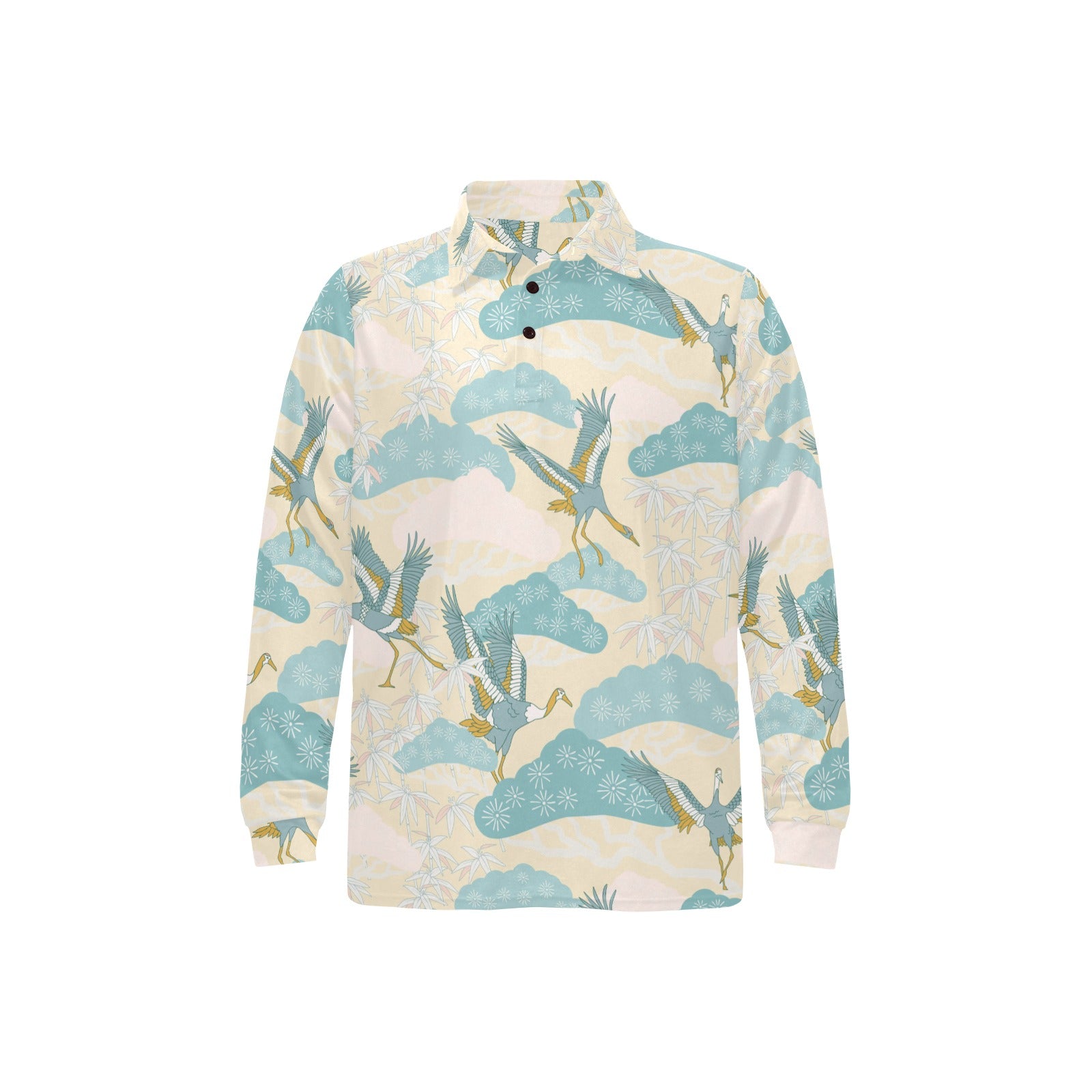 Bonsai bamboo stork japanese pattern cream theme Men's Long Sleeve Polo Shirt