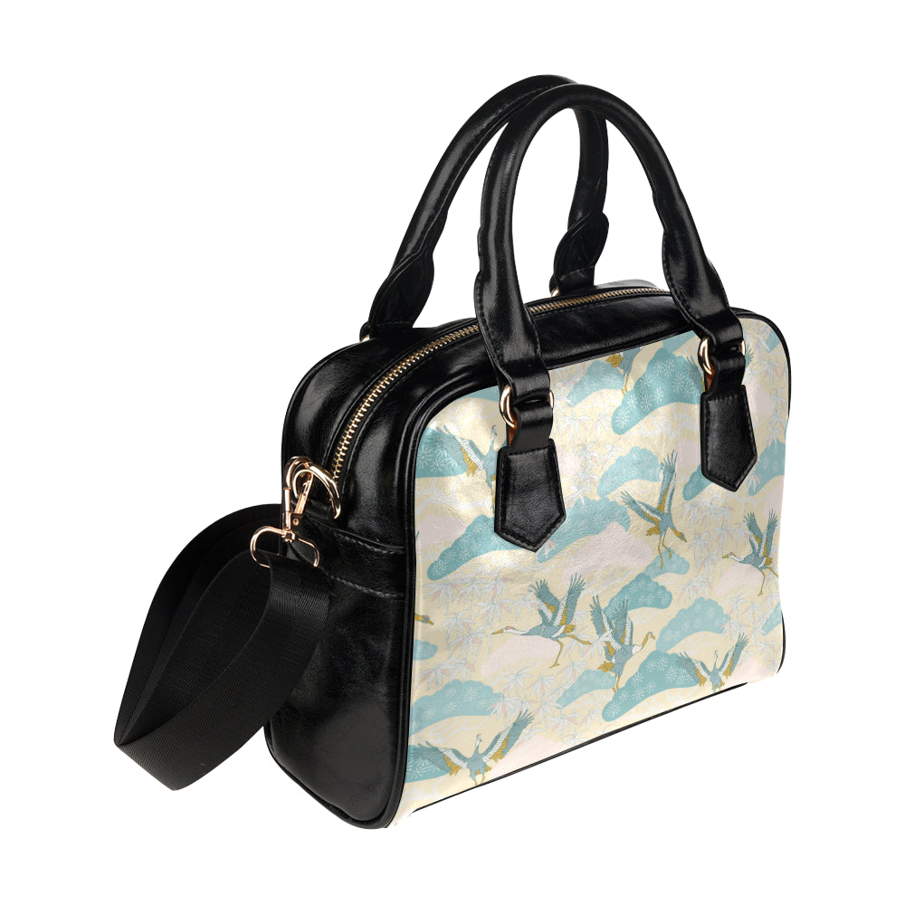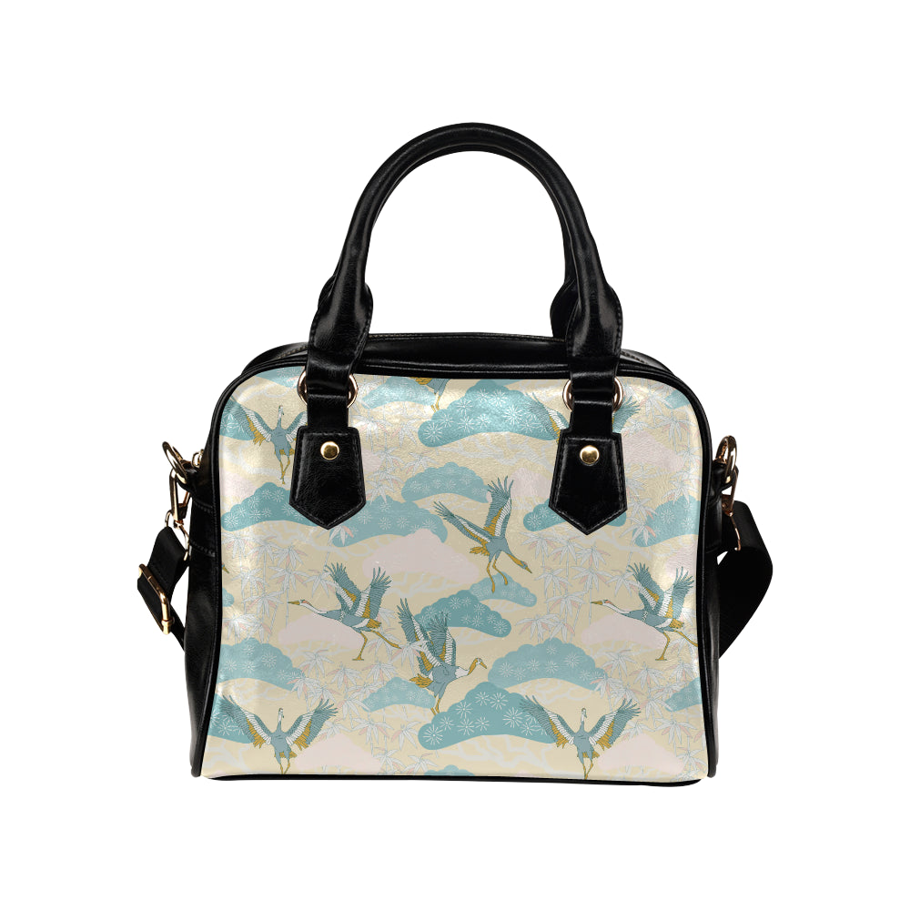 Bonsai bamboo stork japanese pattern cream theme Shoulder Handbag is a uniqued design and limited item. It made to order, hand printed, and sewn with love in our factory.