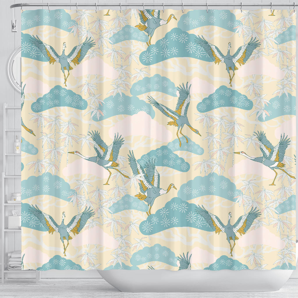 Bonsai bamboo stork japanese pattern cream theme Shower Curtain is a uniqued design and limited item. It made to order, hand printed, and sewn with love in our factory.