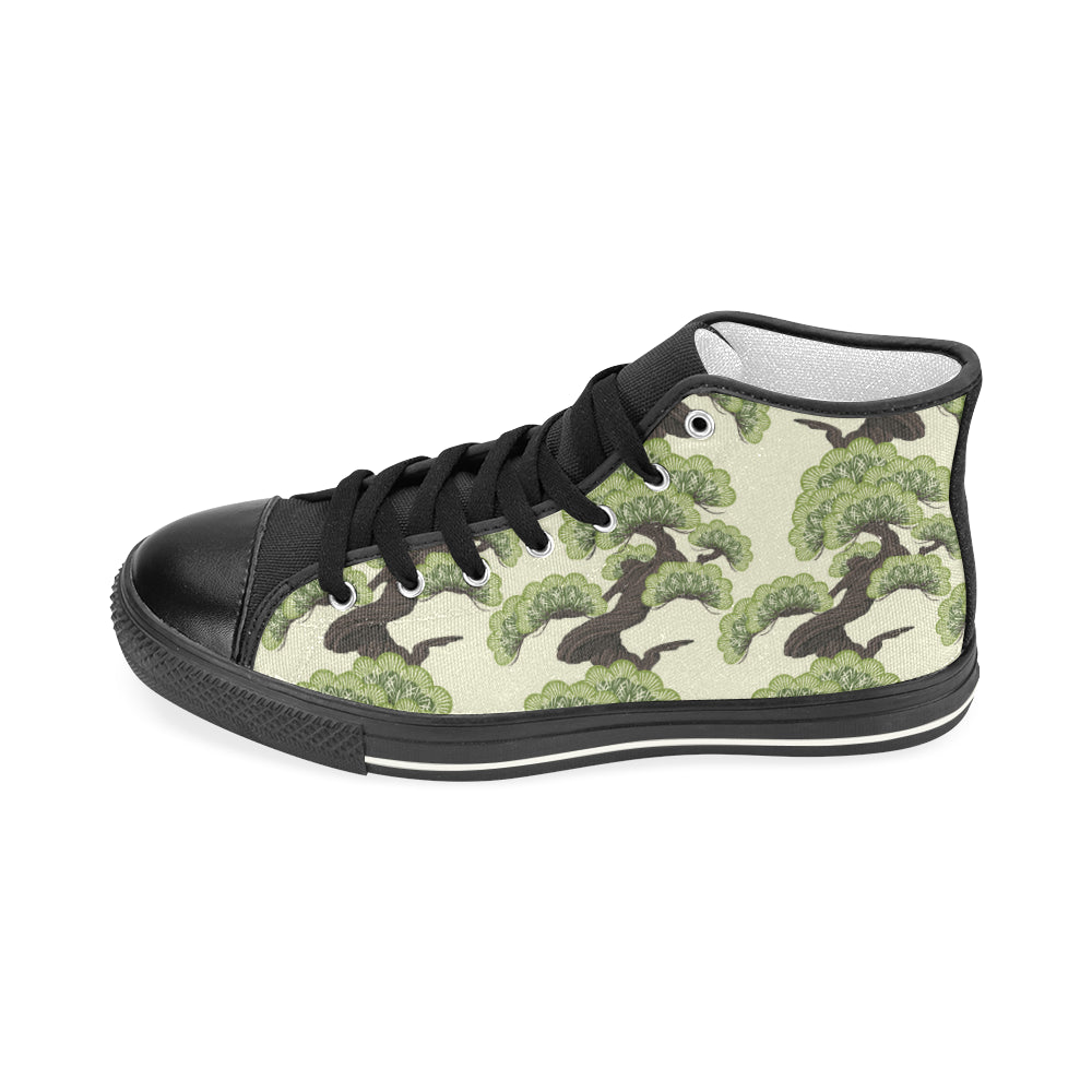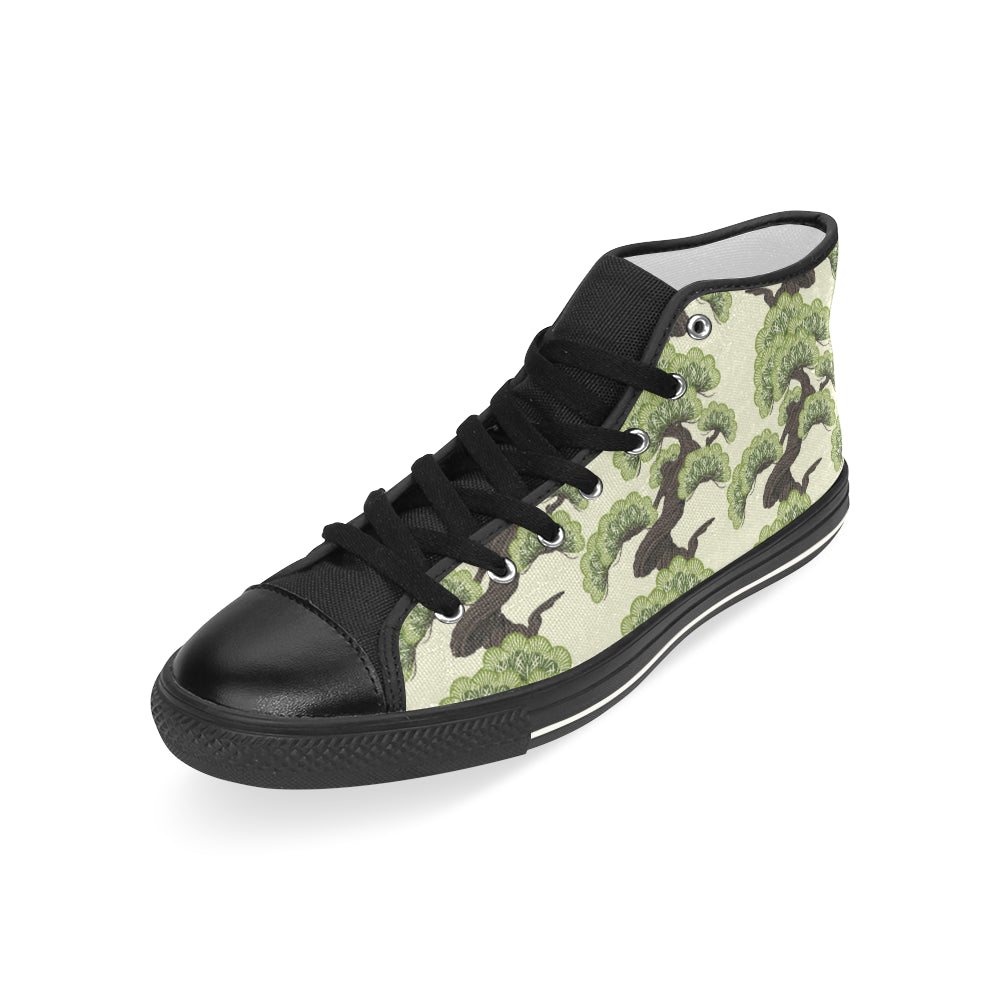 Bonsai pattern Men's High Top Canvas Shoes Black