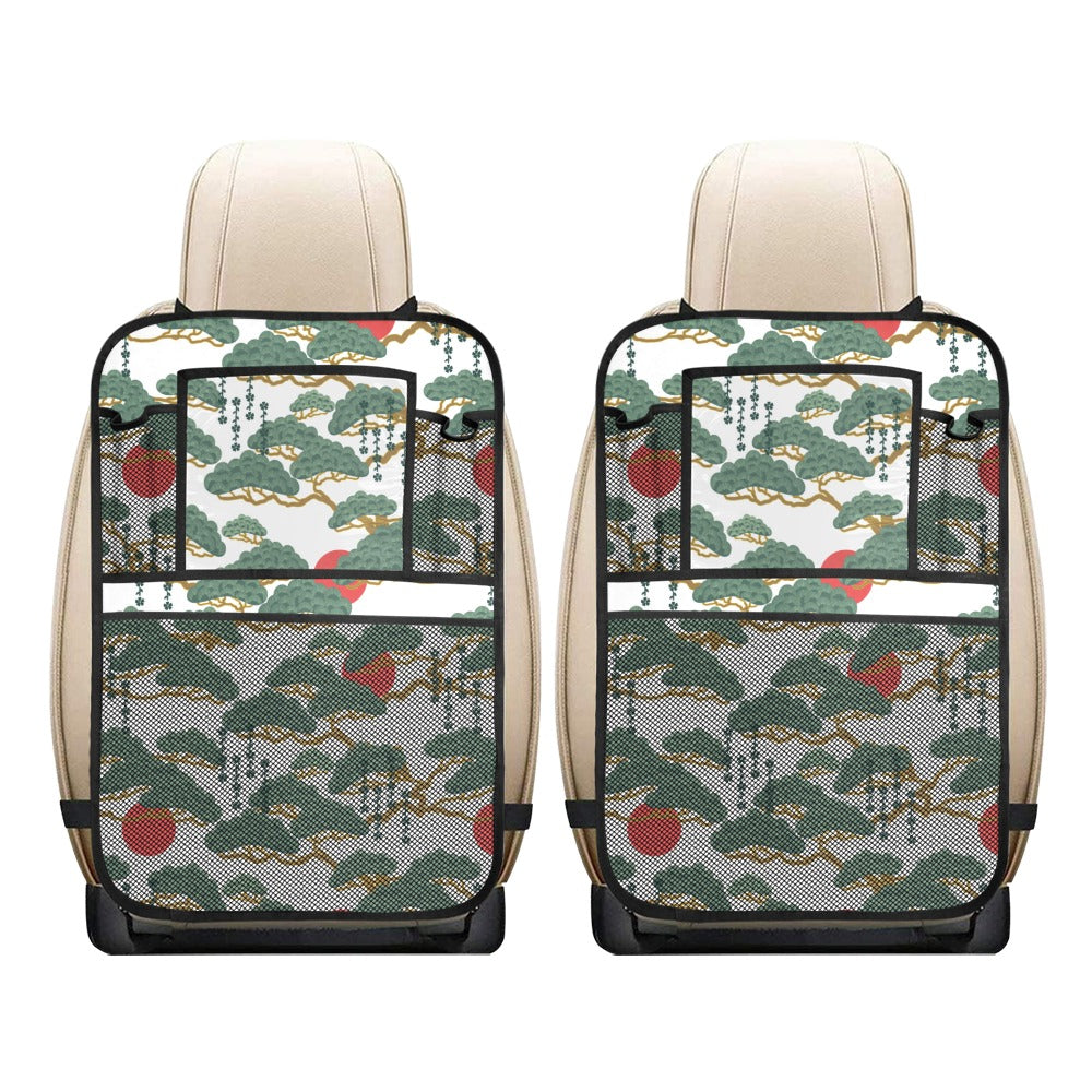 Bonsai red sun japanese pattern Car Seat Back Organizer