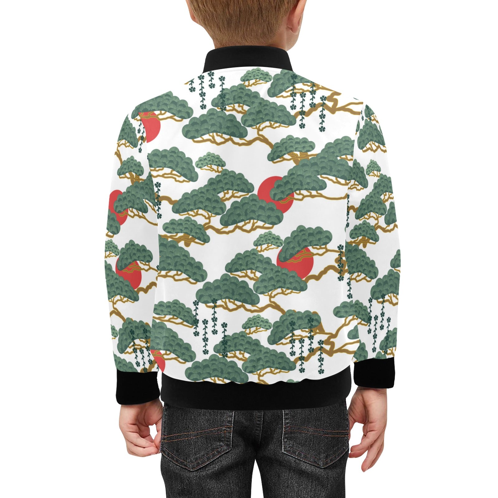 Bonsai red sun japanese pattern Kids' Boys' Girls' Bomber Jacket