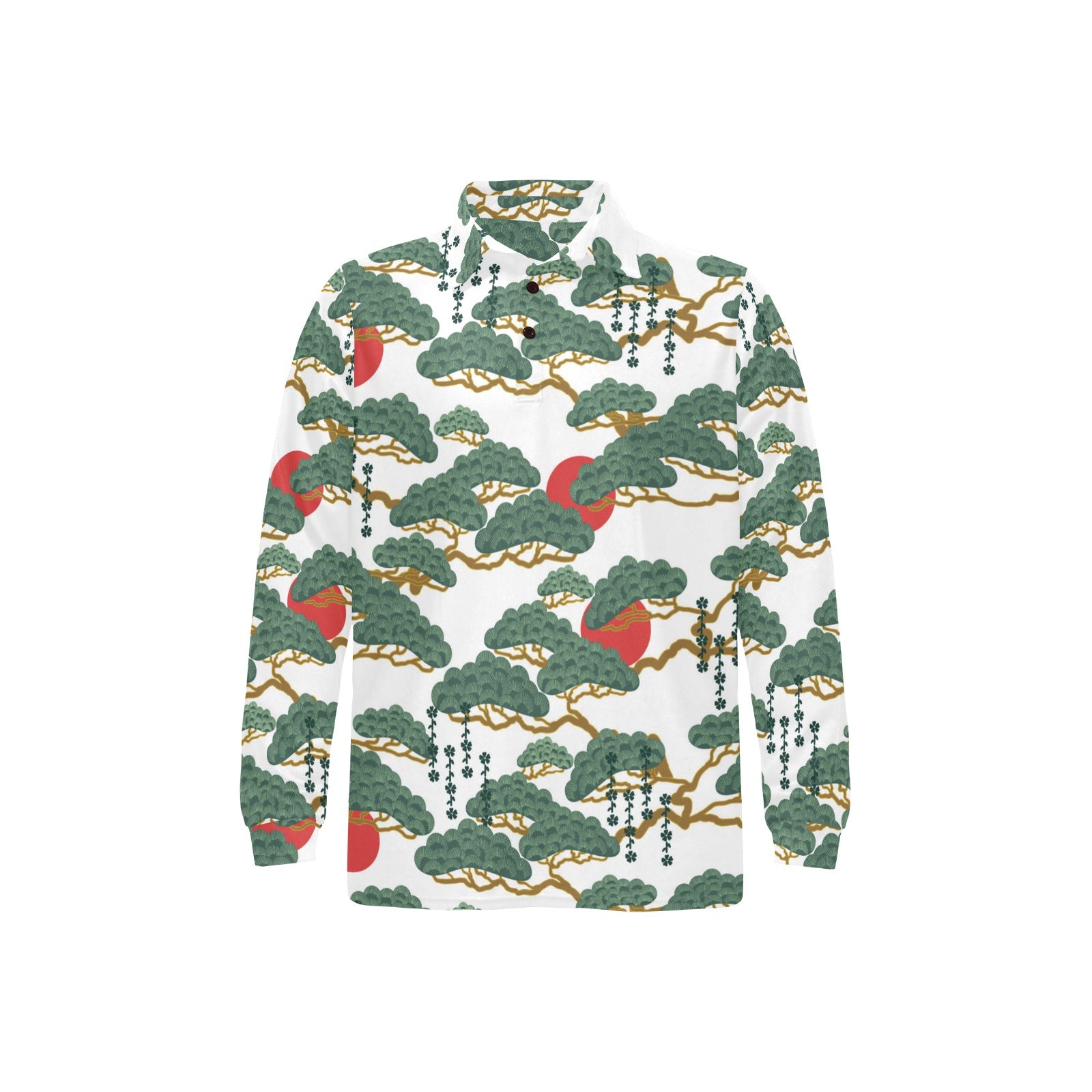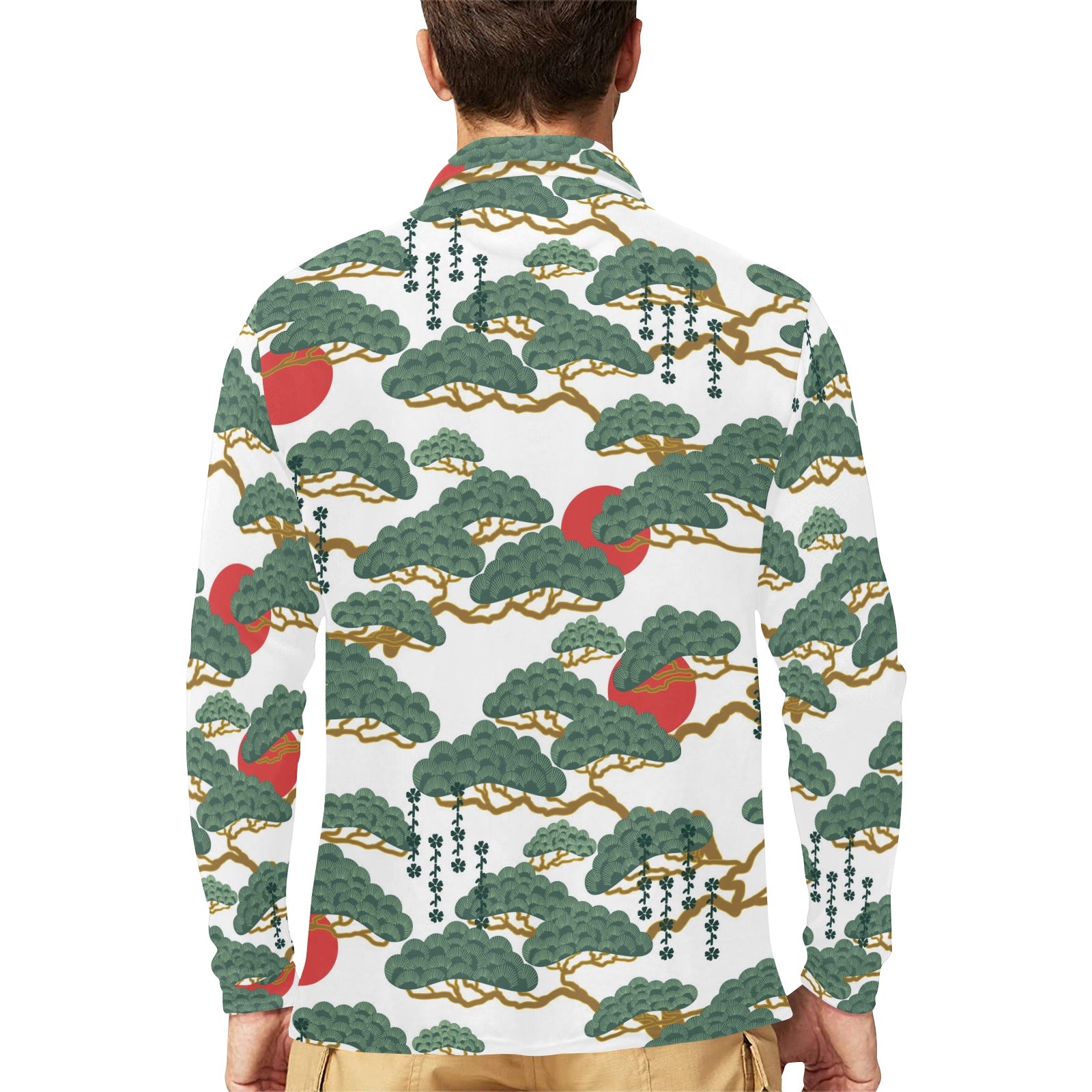 Bonsai red sun japanese pattern Men's Long Sleeve Polo Shirt