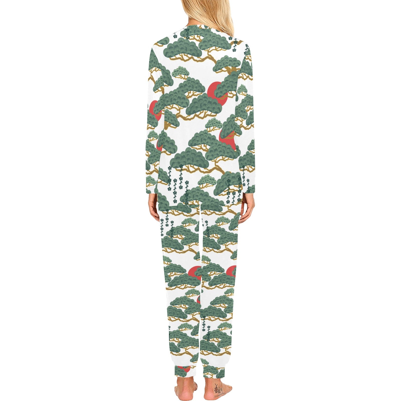 Bonsai red sun japanese pattern Women's All Over Print Pajama Set