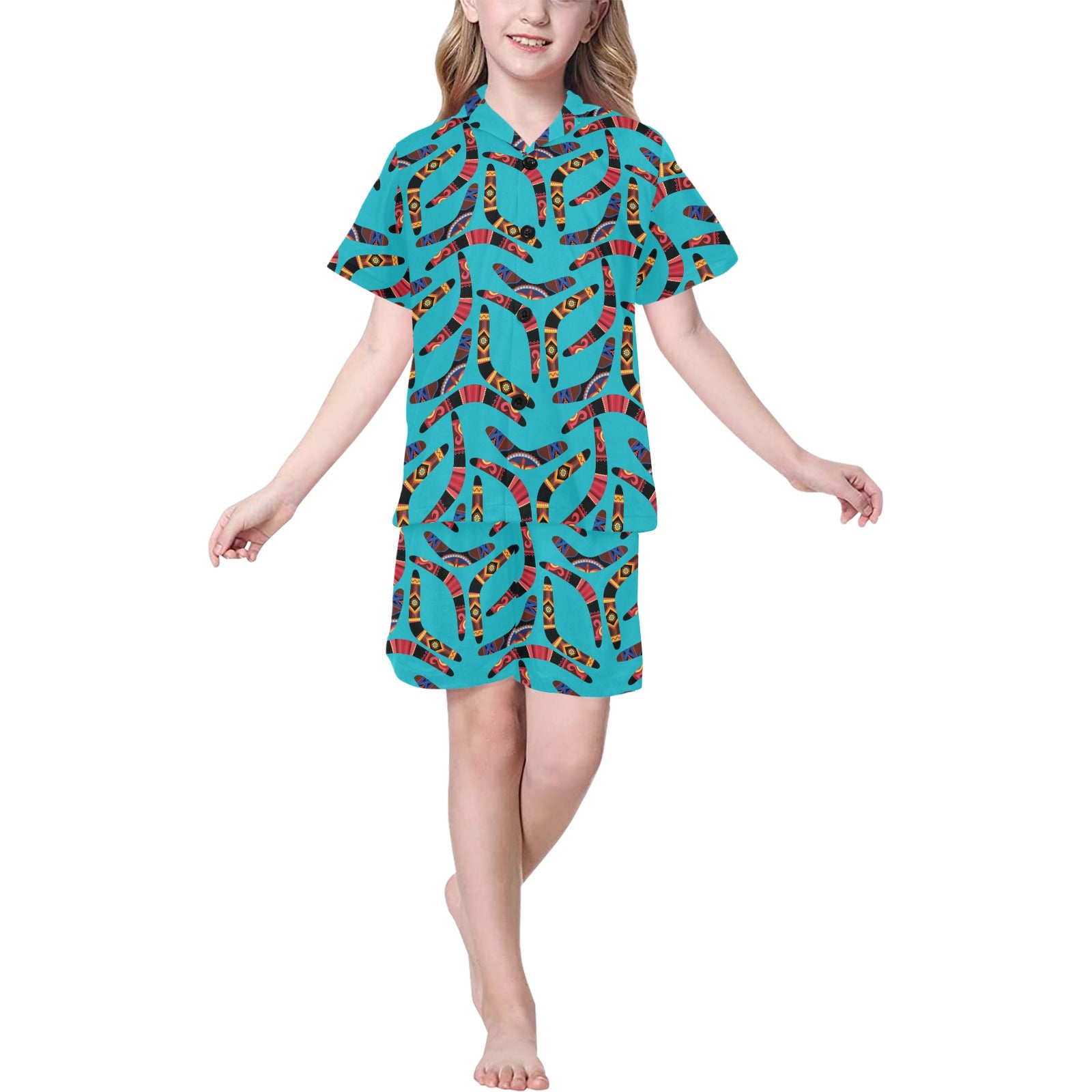 Boomerang Australian aboriginal ornament blue back Kids' Boys' Girls' V-Neck Short Pajama Set