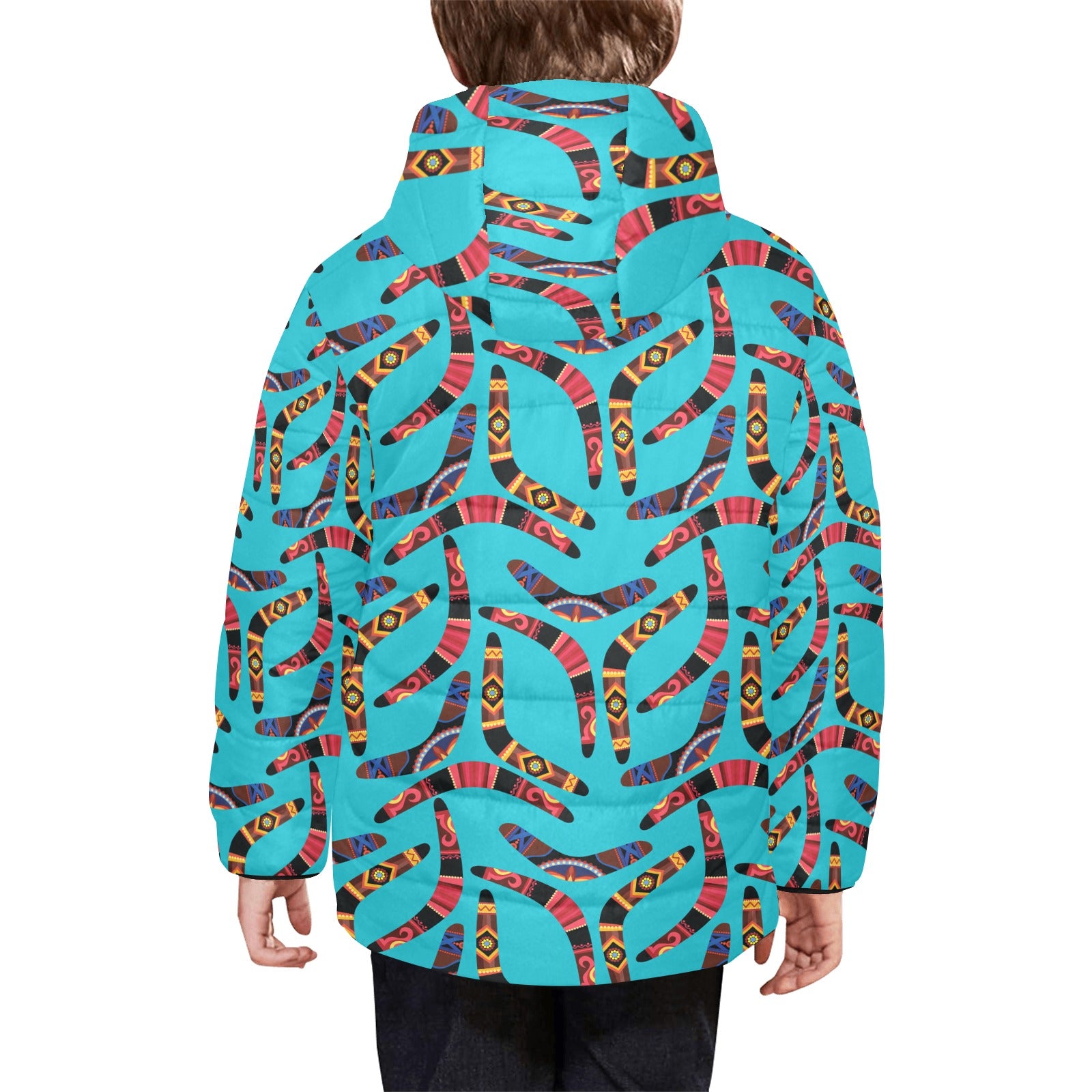 Boomerang Australian aboriginal ornament blue back Kids' Boys' Girls' Padded Hooded Jacket