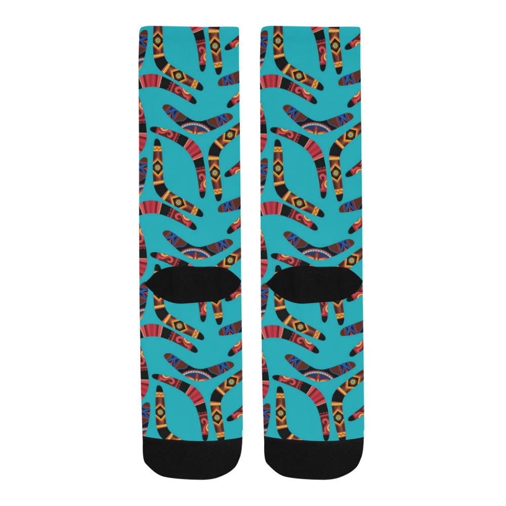 Boomerang Australian aboriginal ornament blue back Crew Socks
