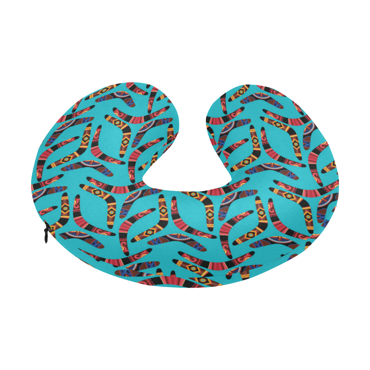 Boomerang Australian aboriginal ornament blue back U-Shaped Travel Neck Pillow