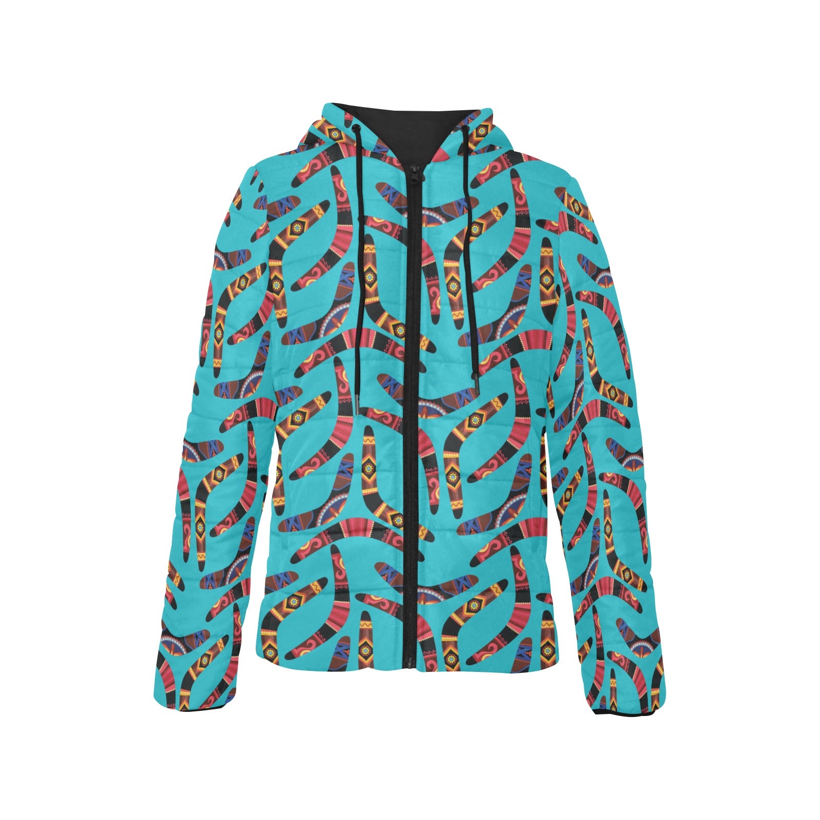 Boomerang Australian aboriginal ornament blue back Women's Padded Hooded Jacket