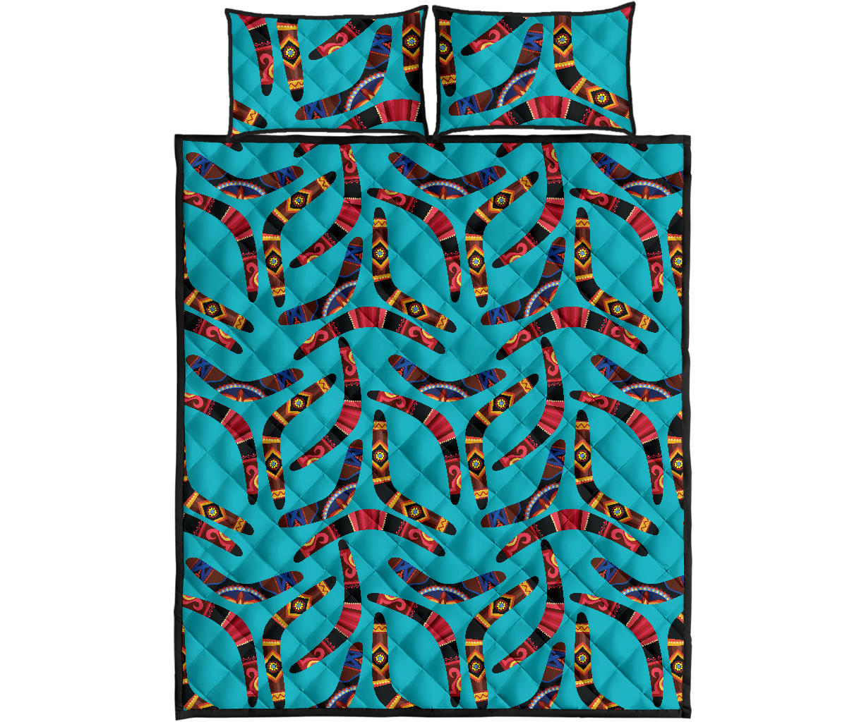 Boomerang Australian aboriginal ornament blue background Quilt Bed Set