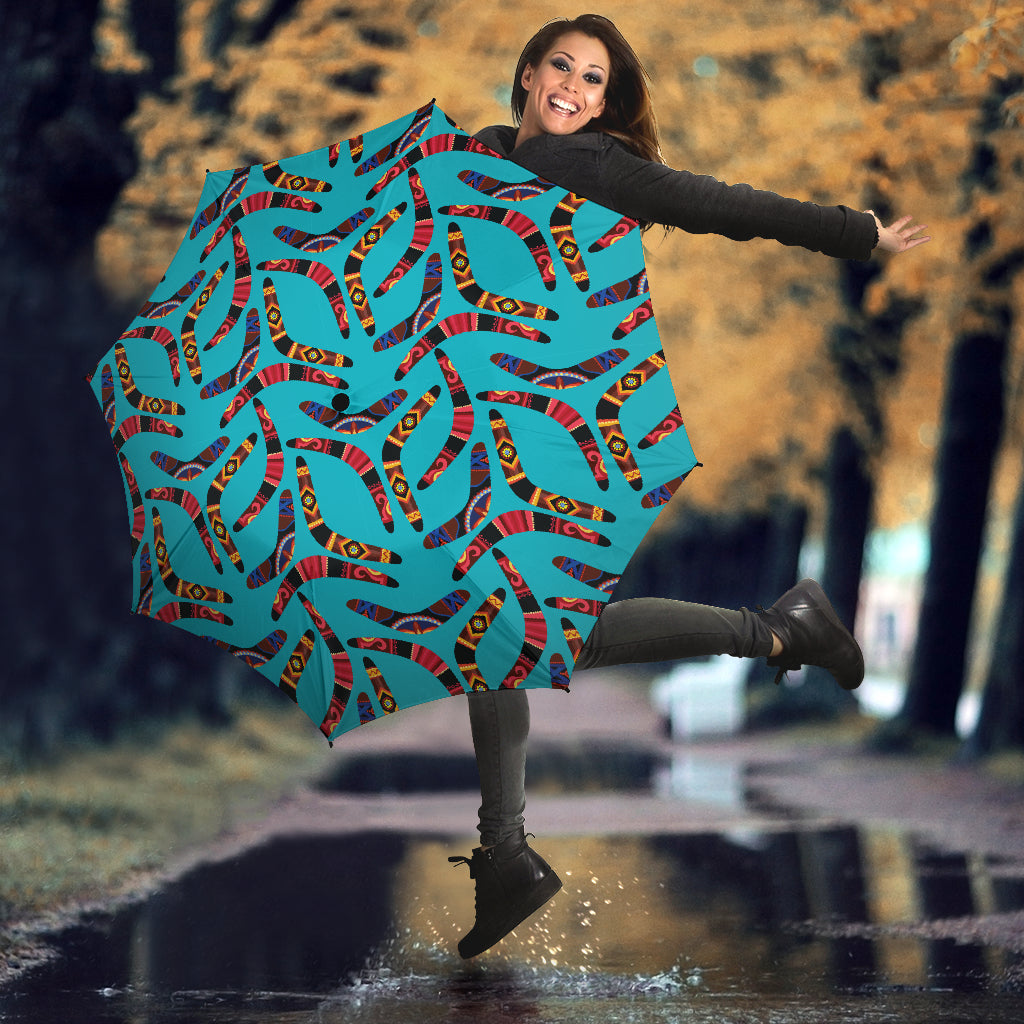 Boomerang Australian Aboriginal Ornament Blue Background Umbrella