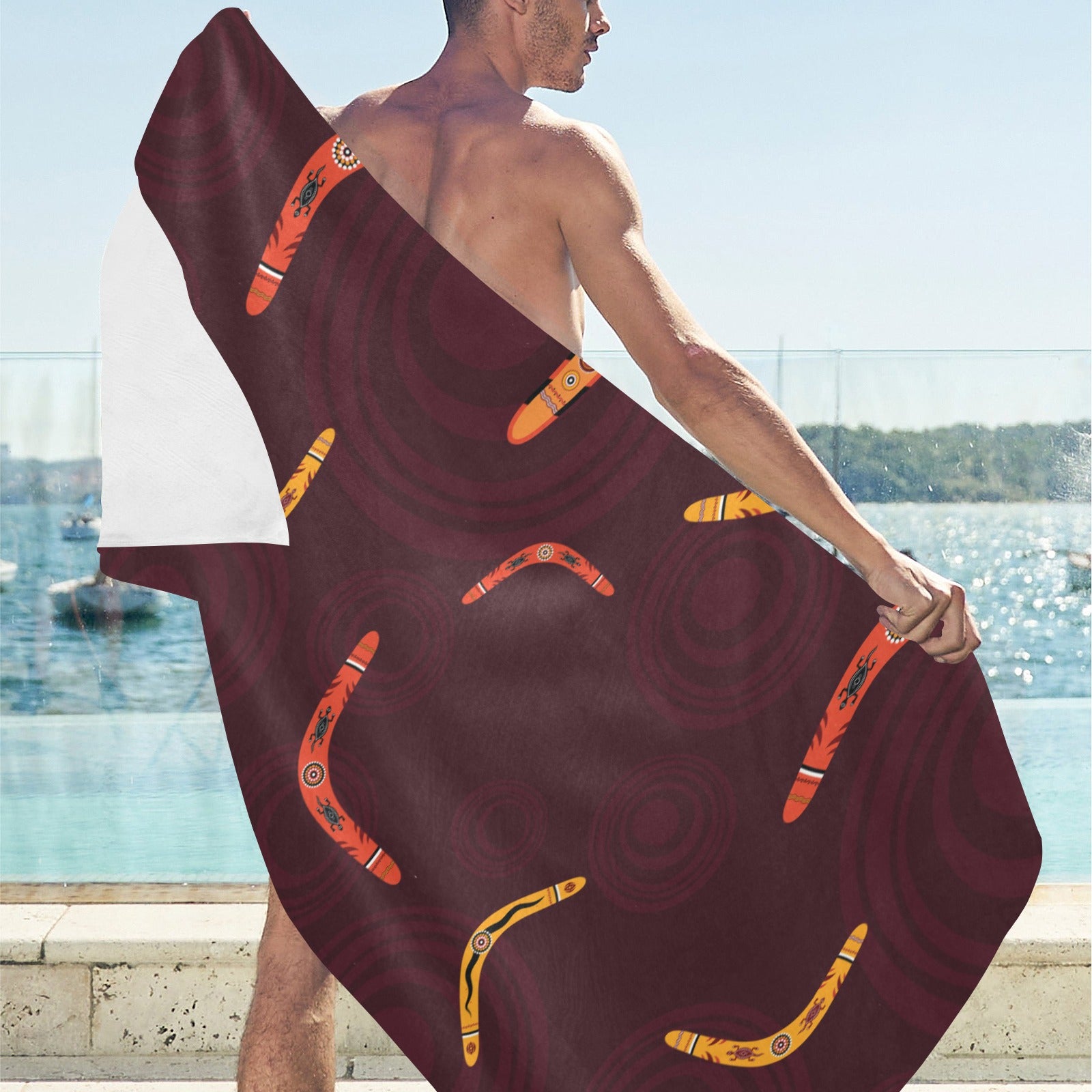 Boomerang Australian aboriginal ornament circle bl Beach Towel