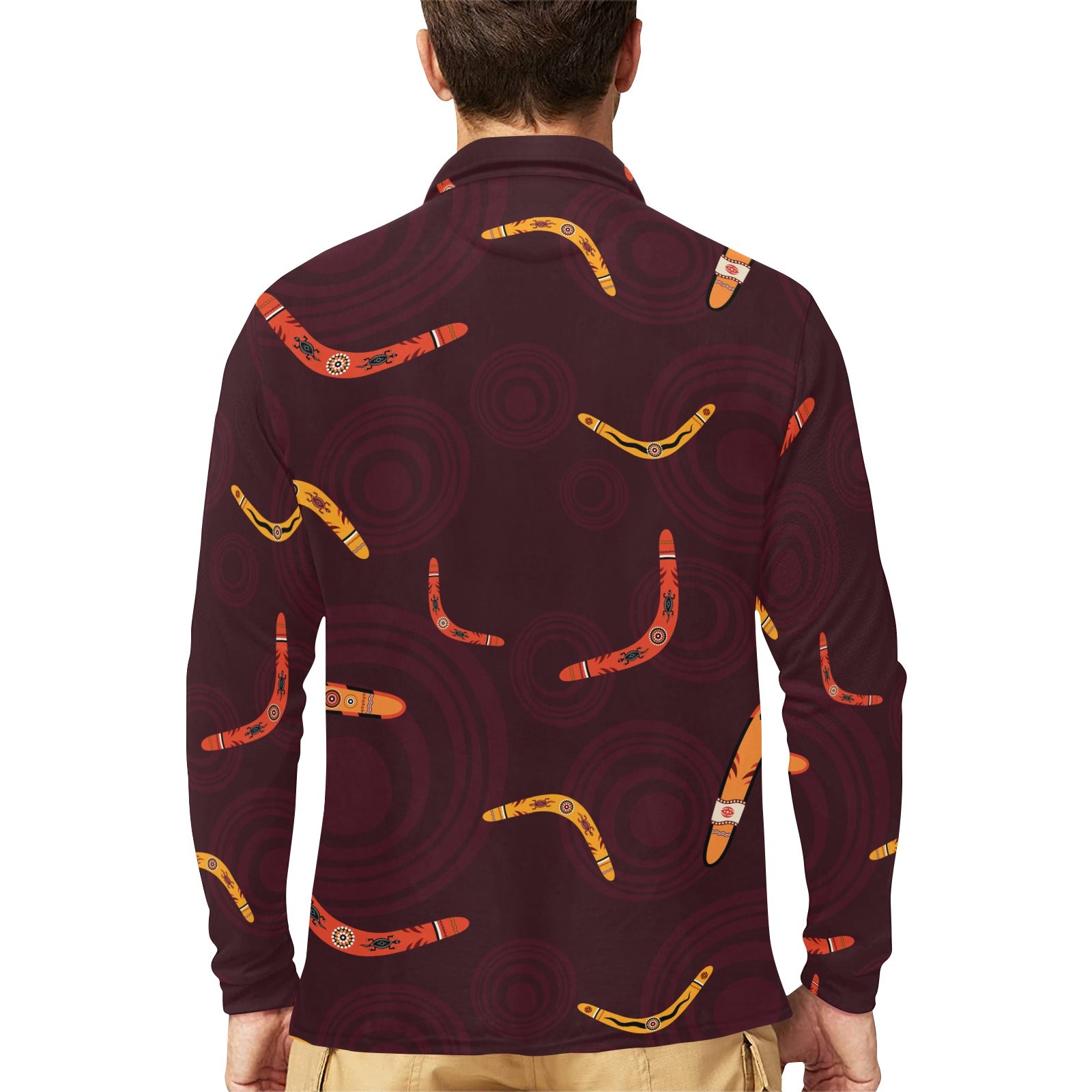 Boomerang Australian aboriginal ornament circle bl Men's Long Sleeve Polo Shirt