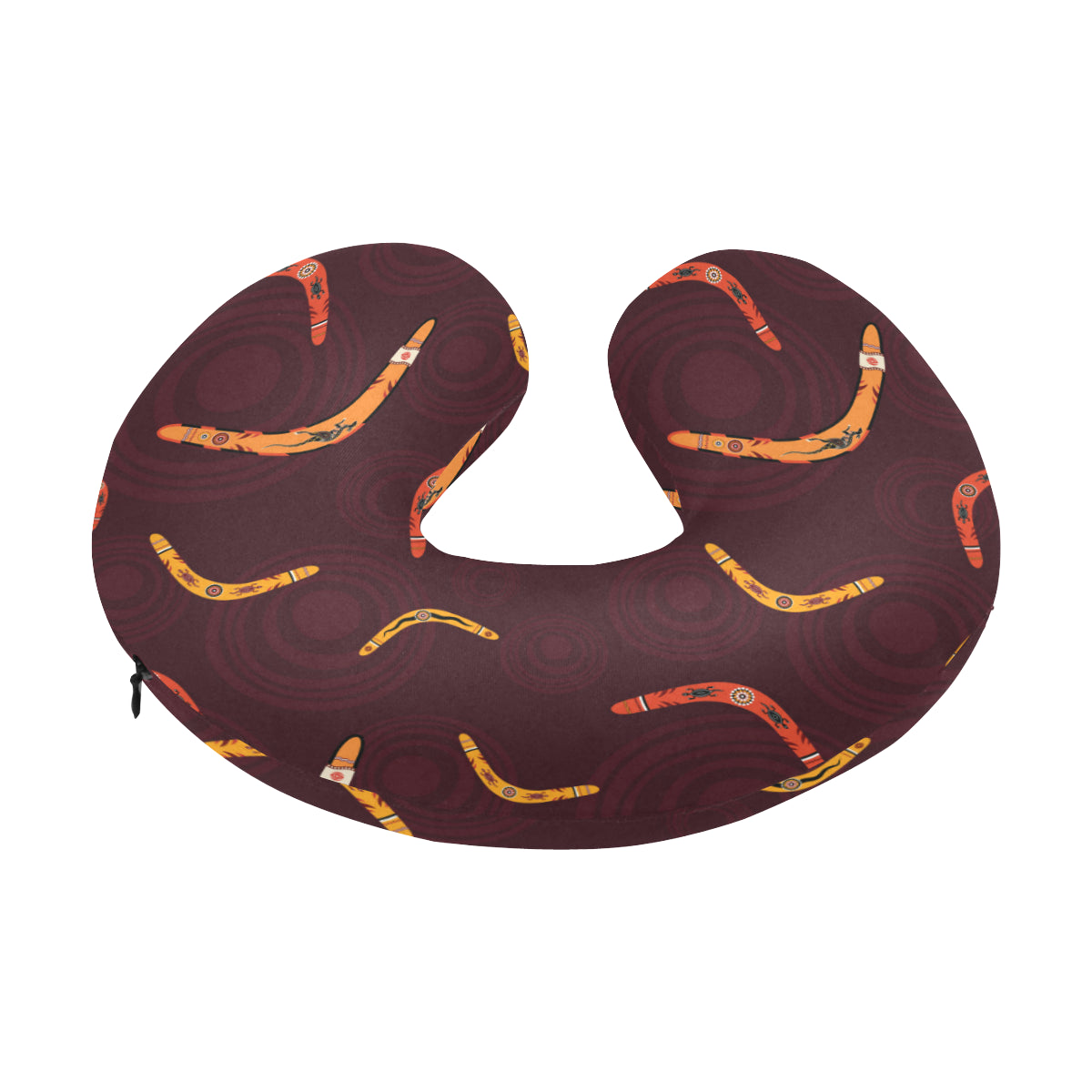 Boomerang Australian aboriginal ornament circle bl U-Shaped Travel Neck Pillow