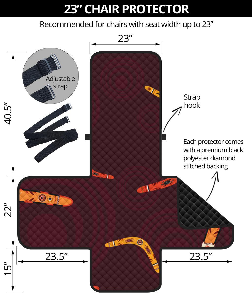 Boomerang Australian aboriginal ornament circle black background Chair Cover Protector