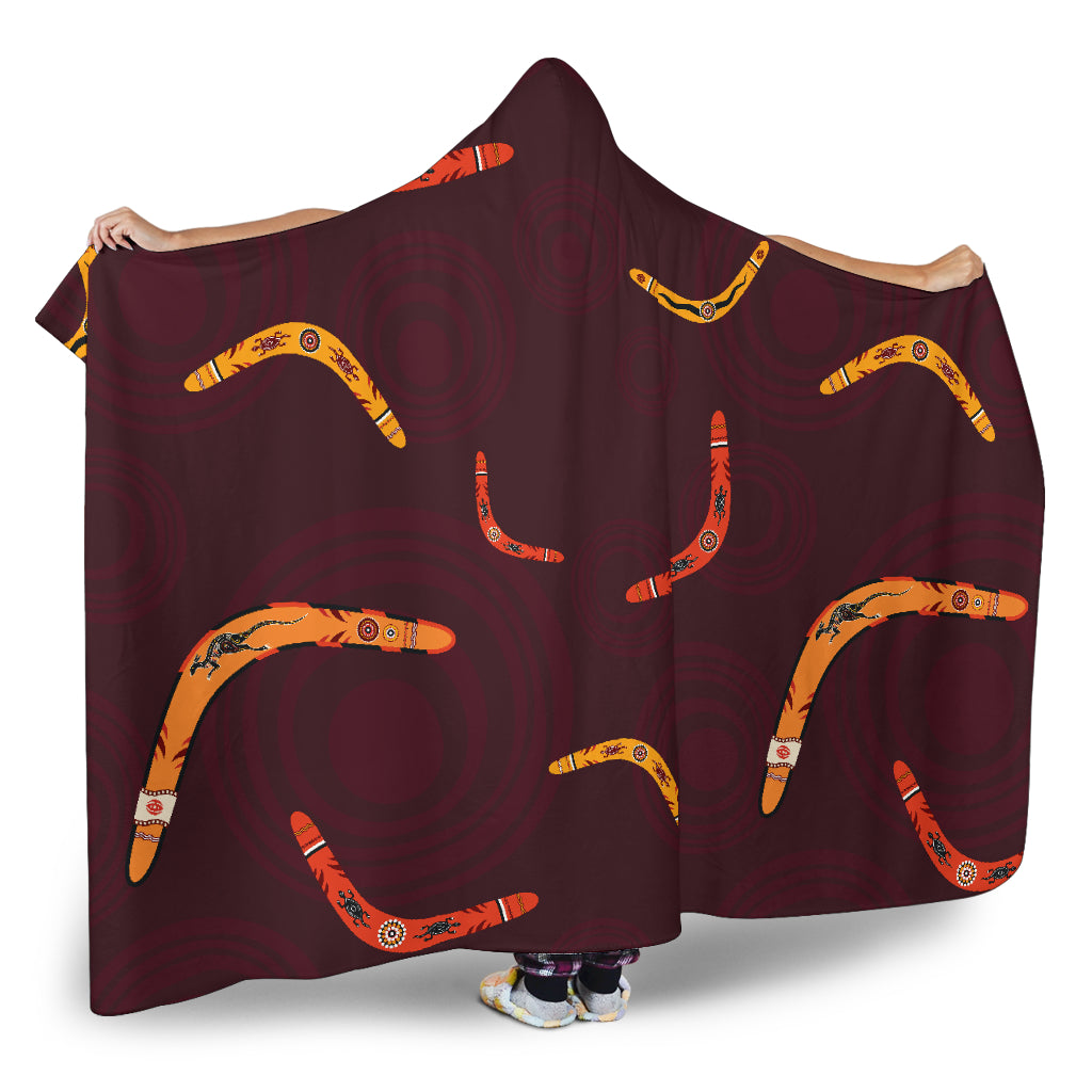 Boomerang Australian aboriginal ornament circle black background Hooded Blanket are custom-made-to-order and handcrafted to the highest quality standards.