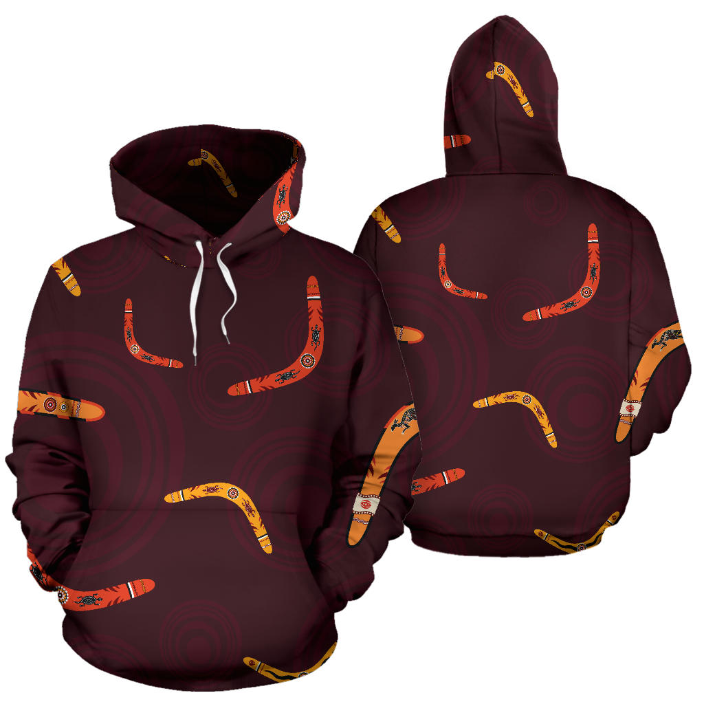 Boomerang Australian Aboriginal Ornament Circle Black Background Men Women Pullover Hoodie