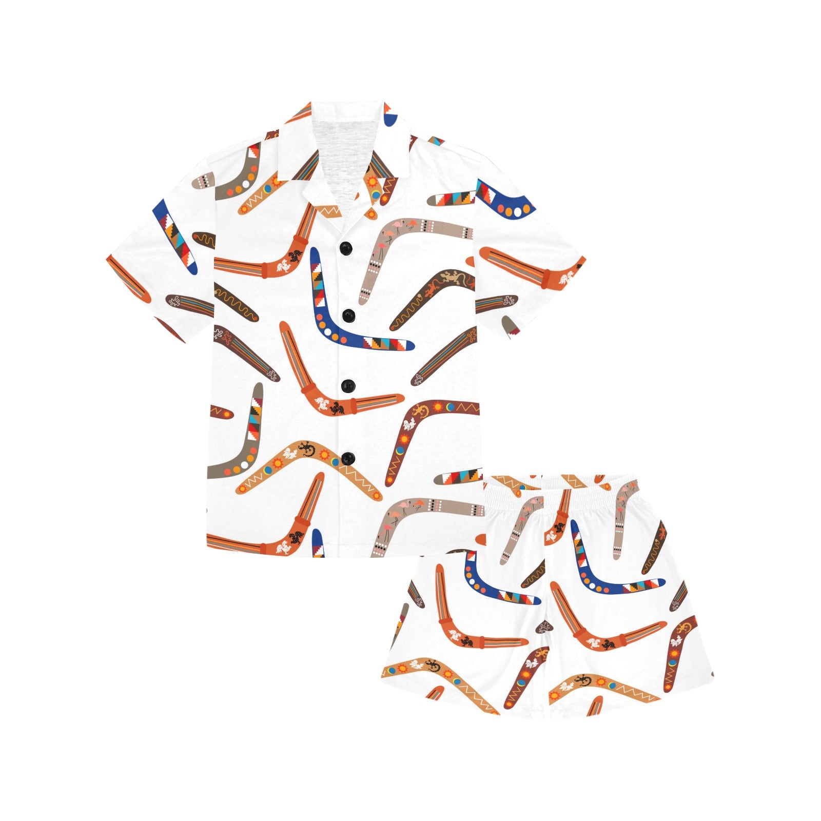 Boomerang Australian aboriginal ornament pattern Kids' Boys' Girls' V-Neck Short Pajama Set
