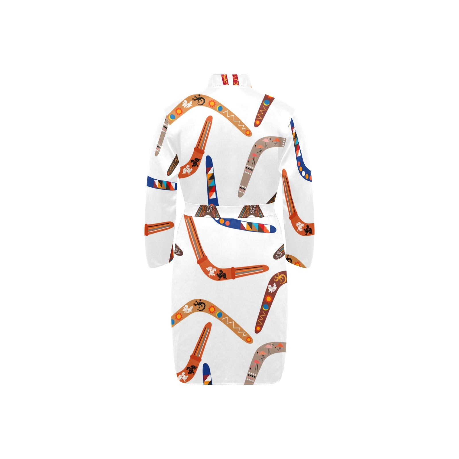 Boomerang Australian aboriginal ornament pattern Men's Long Sleeve Belted Night Robe