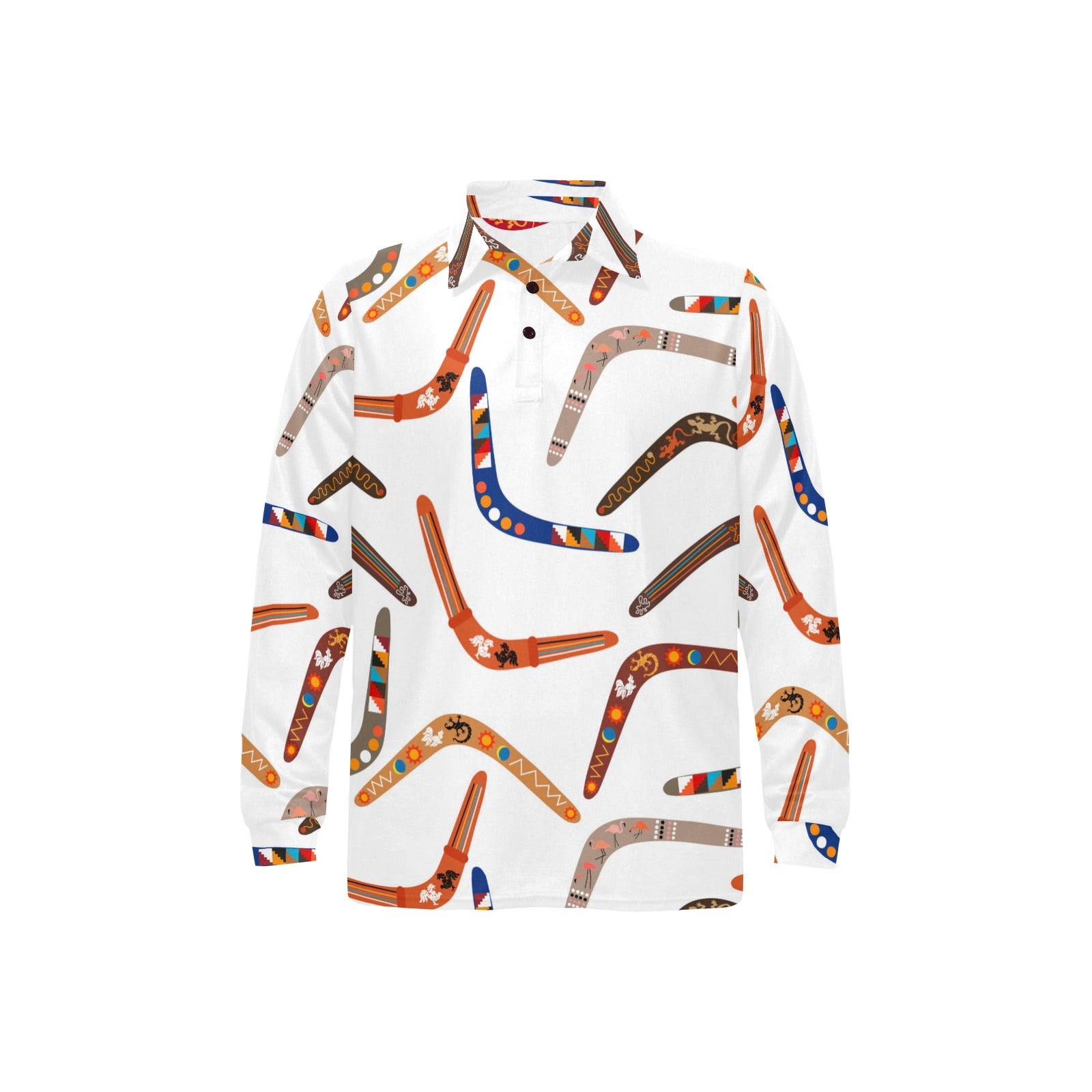 Boomerang Australian aboriginal ornament pattern Men's Long Sleeve Polo Shirt