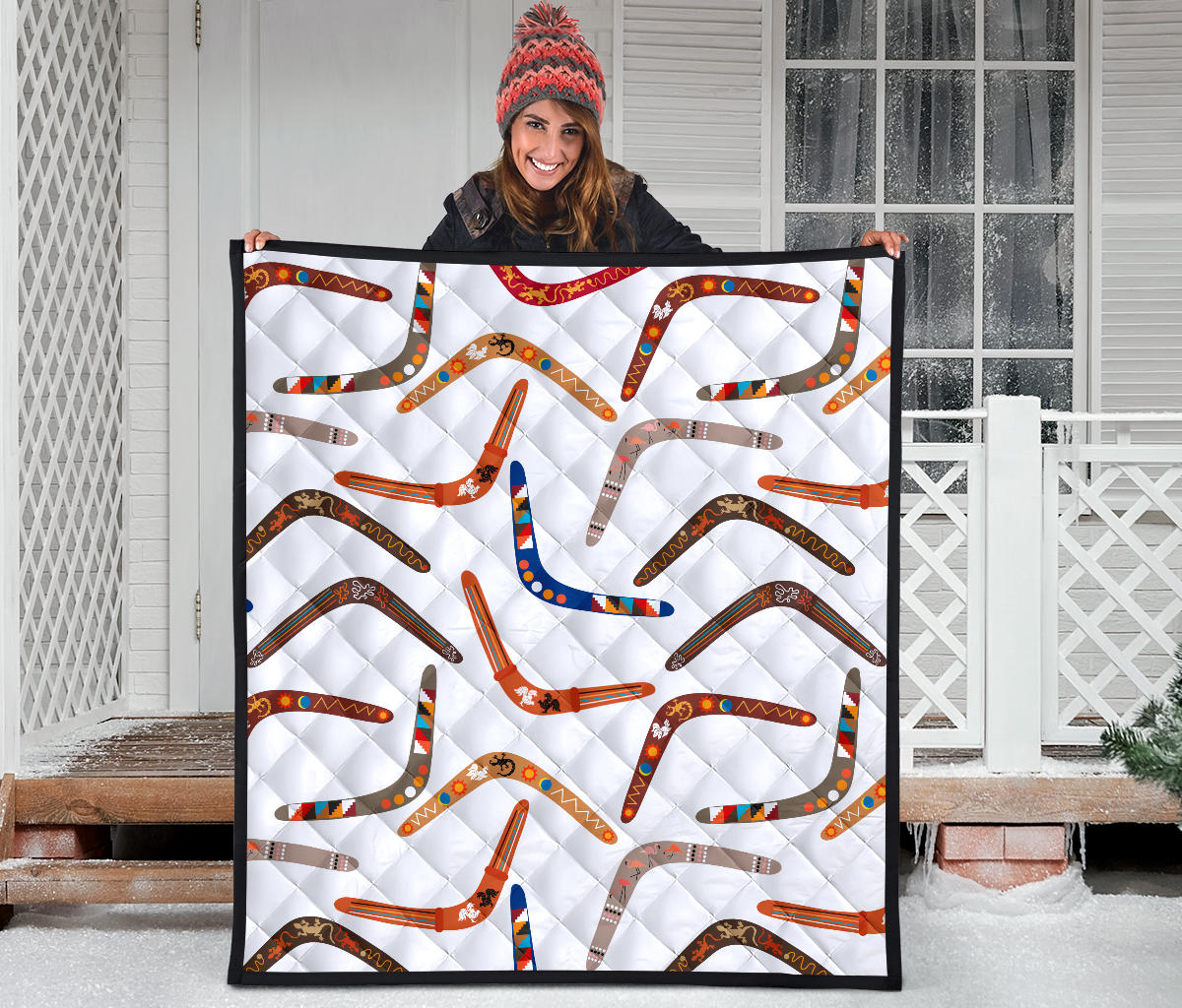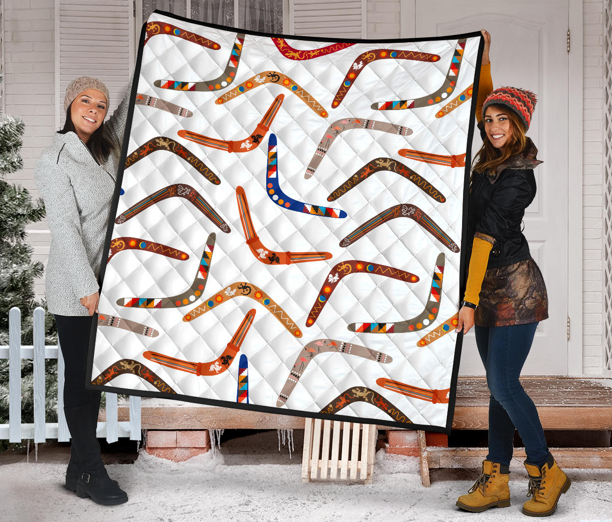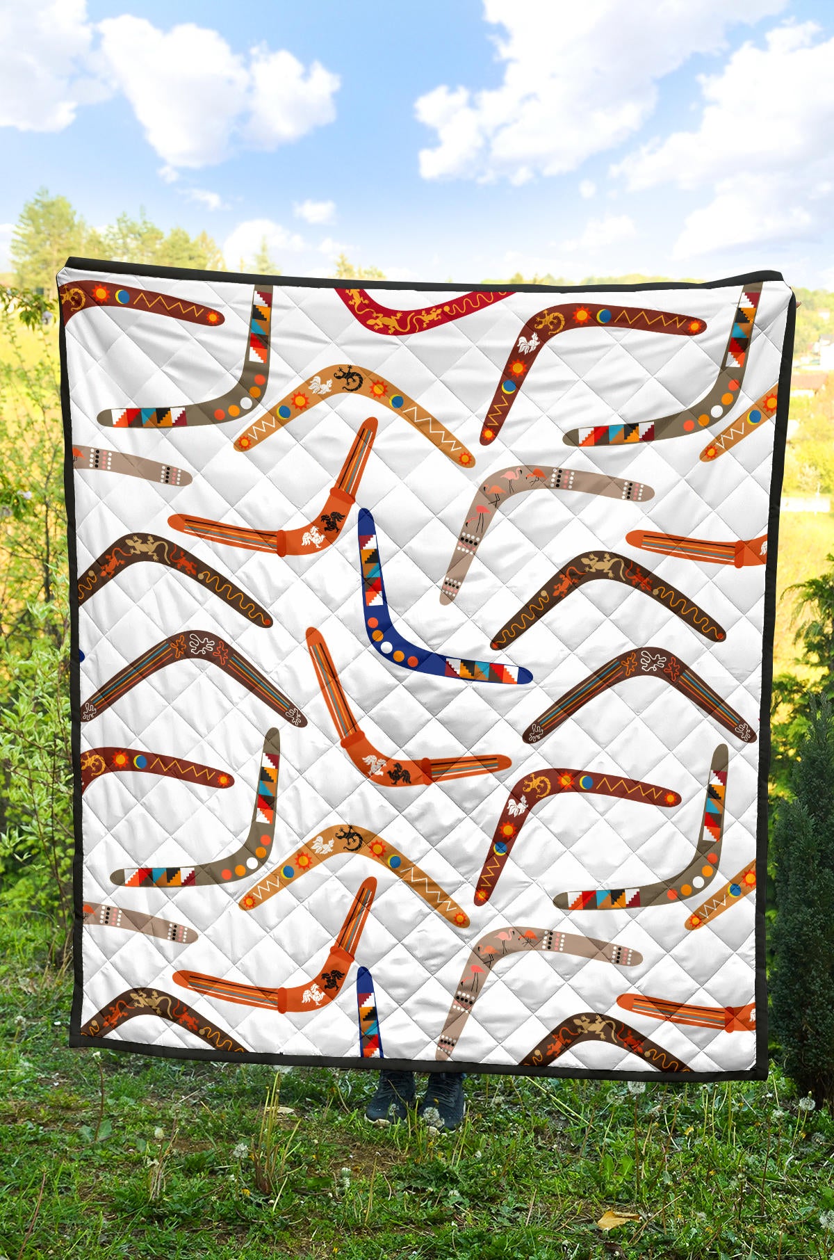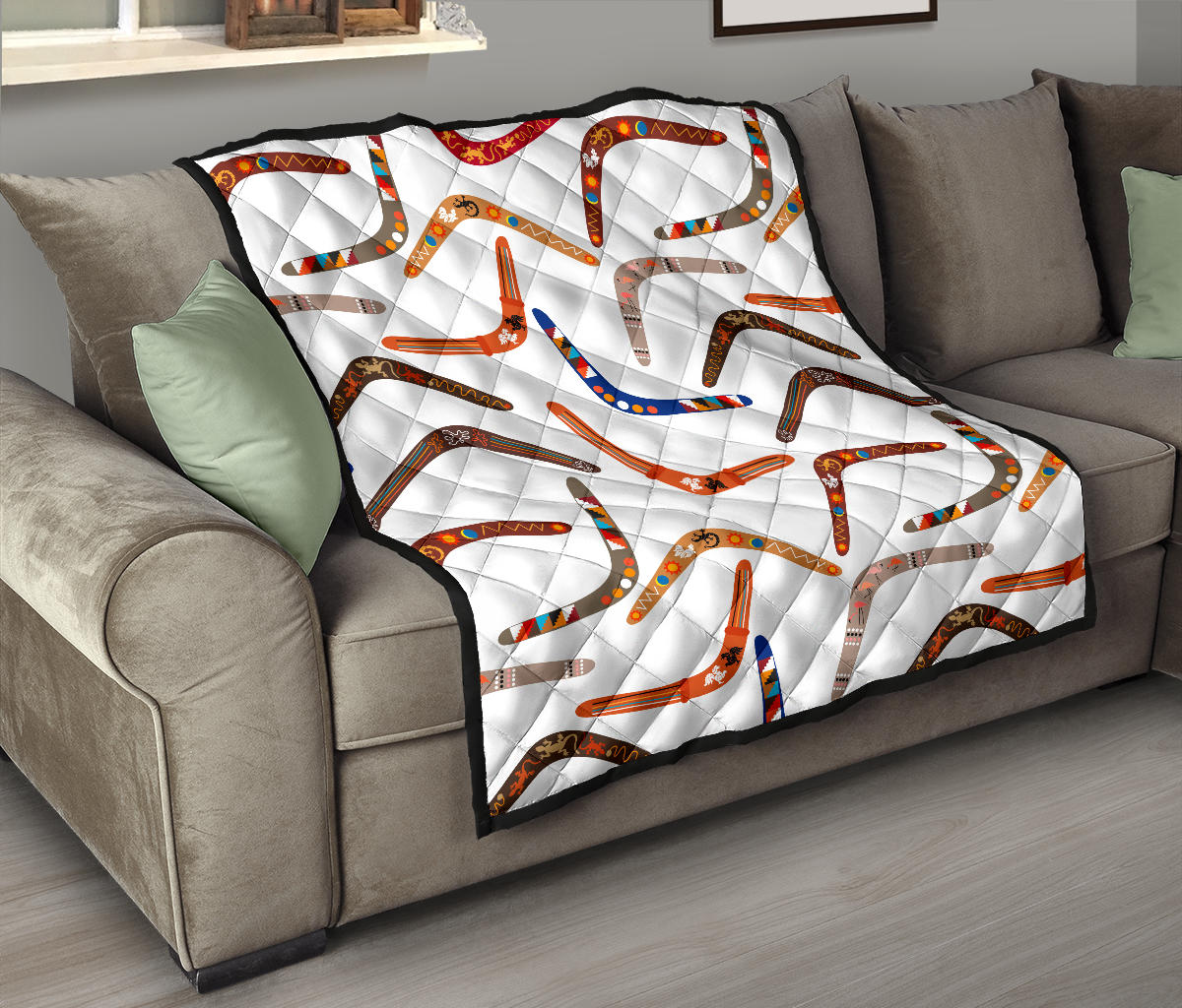 Boomerang Australian Aboriginal Ornament Pattern Premium Quilt is a uniqued design and limited item. It made to order, hand printed, and sewn with love in our factory.