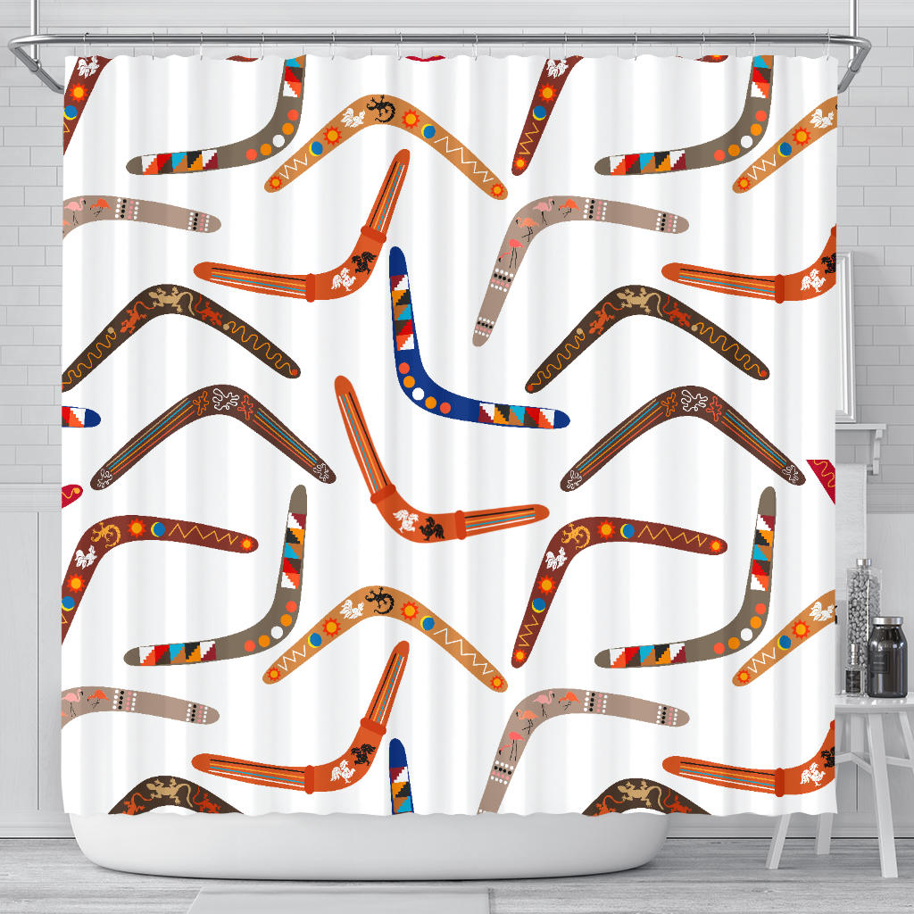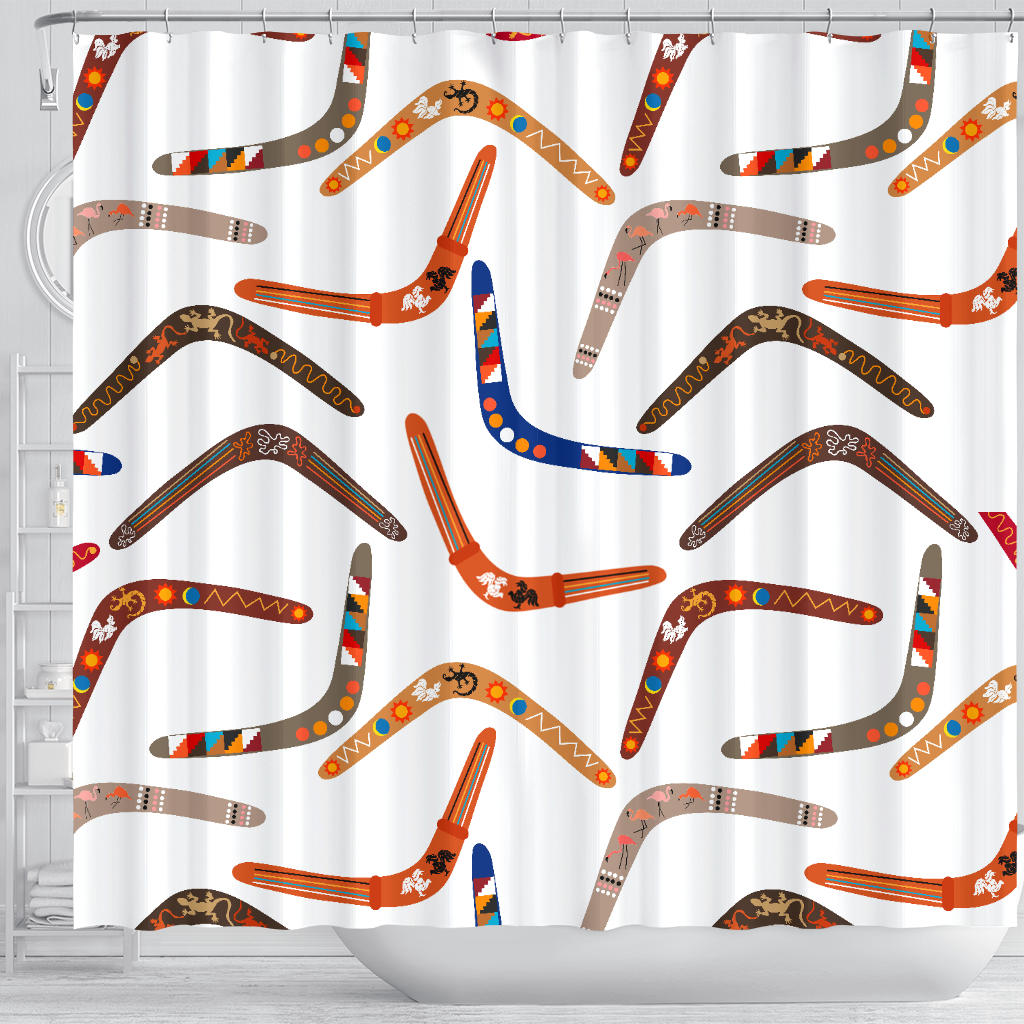 Boomerang Australian Aboriginal Ornament Pattern Shower Curtain Fulfilled In US
