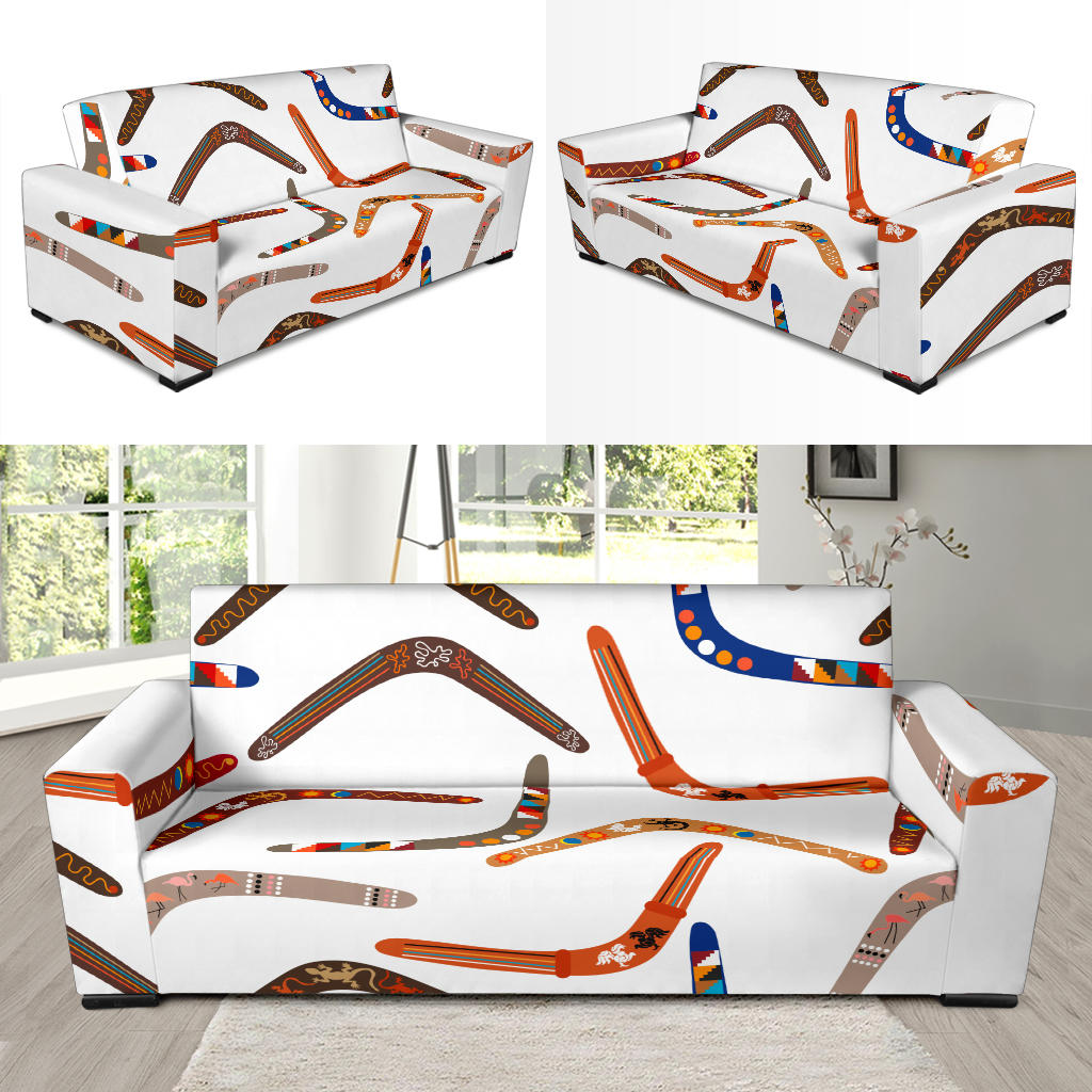 Boomerang Australian aboriginal ornament pattern Sofa Slipcover is a uniqued design and limited item. It made to order, hand printed, and sewn with love in our factory.
