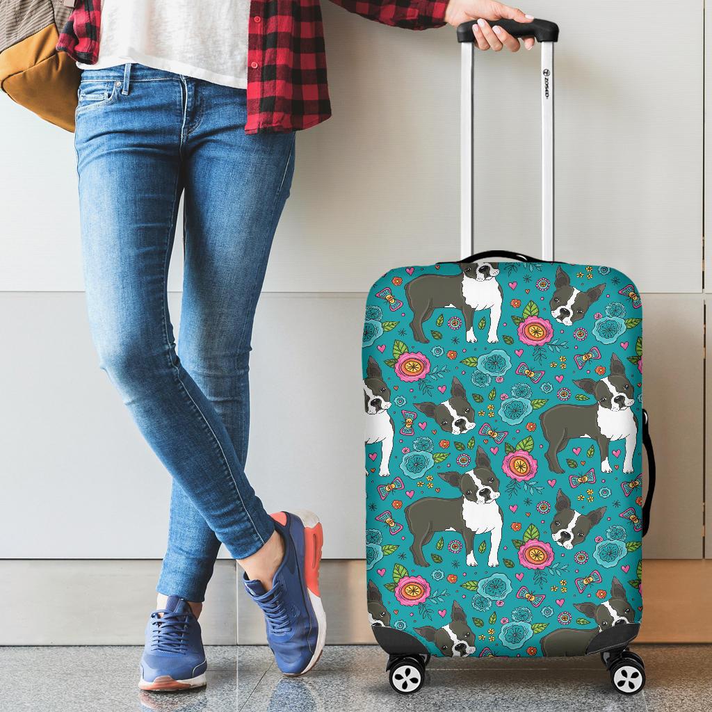 Boston Terrier Beautiful Flower Pattern Cabin Suitcases Luggages