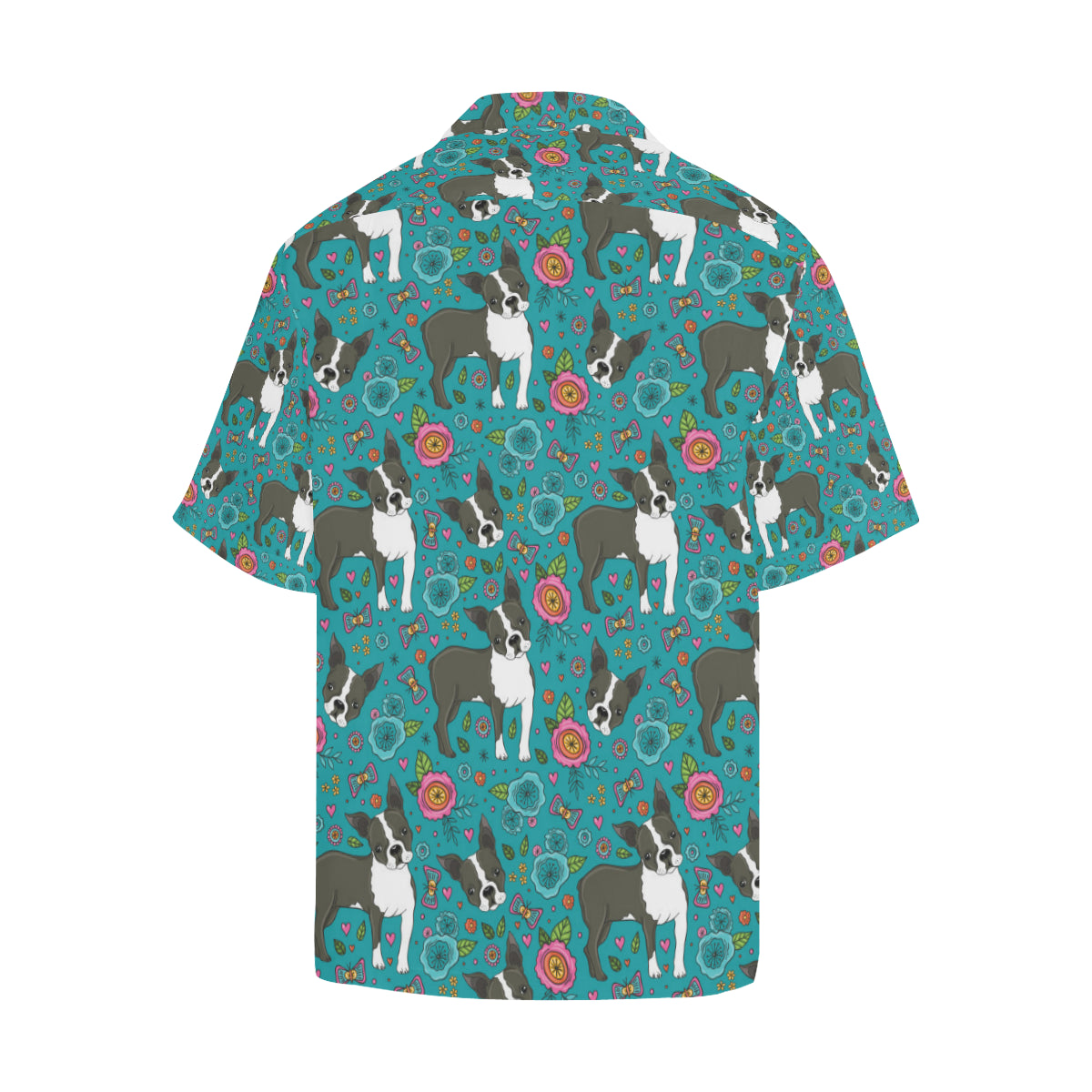 Boston terrier beautiful flower pattern Men's All Over Print Hawaiian Shirt