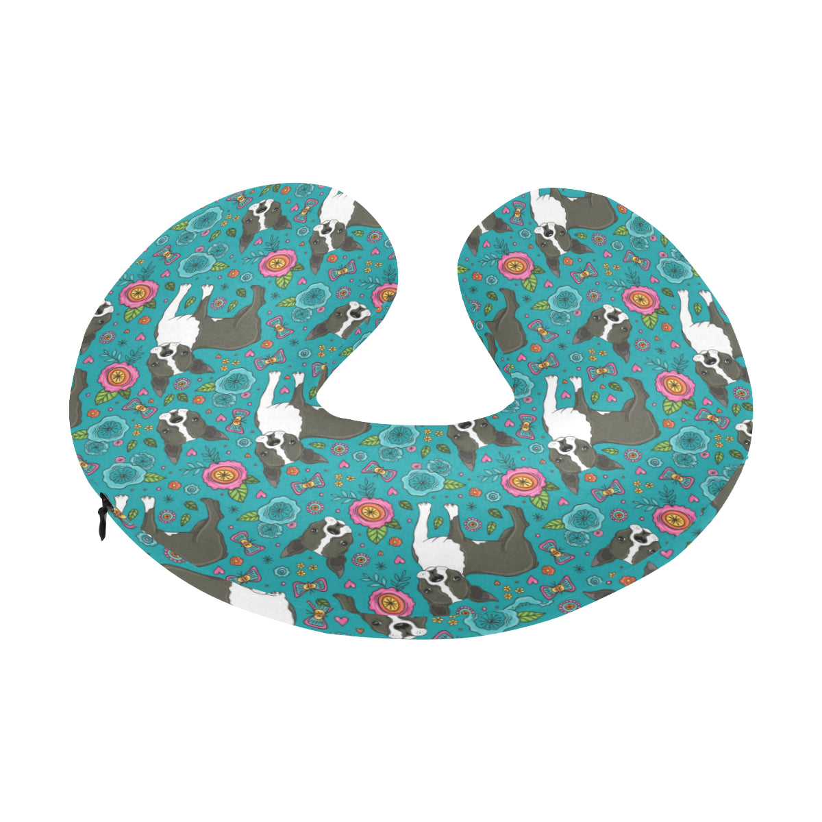 Boston terrier beautiful flower pattern U-Shaped Travel Neck Pillow