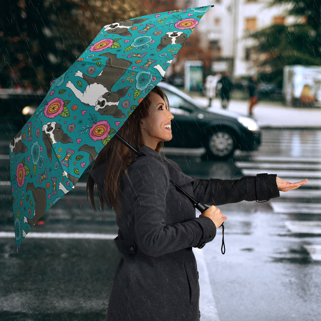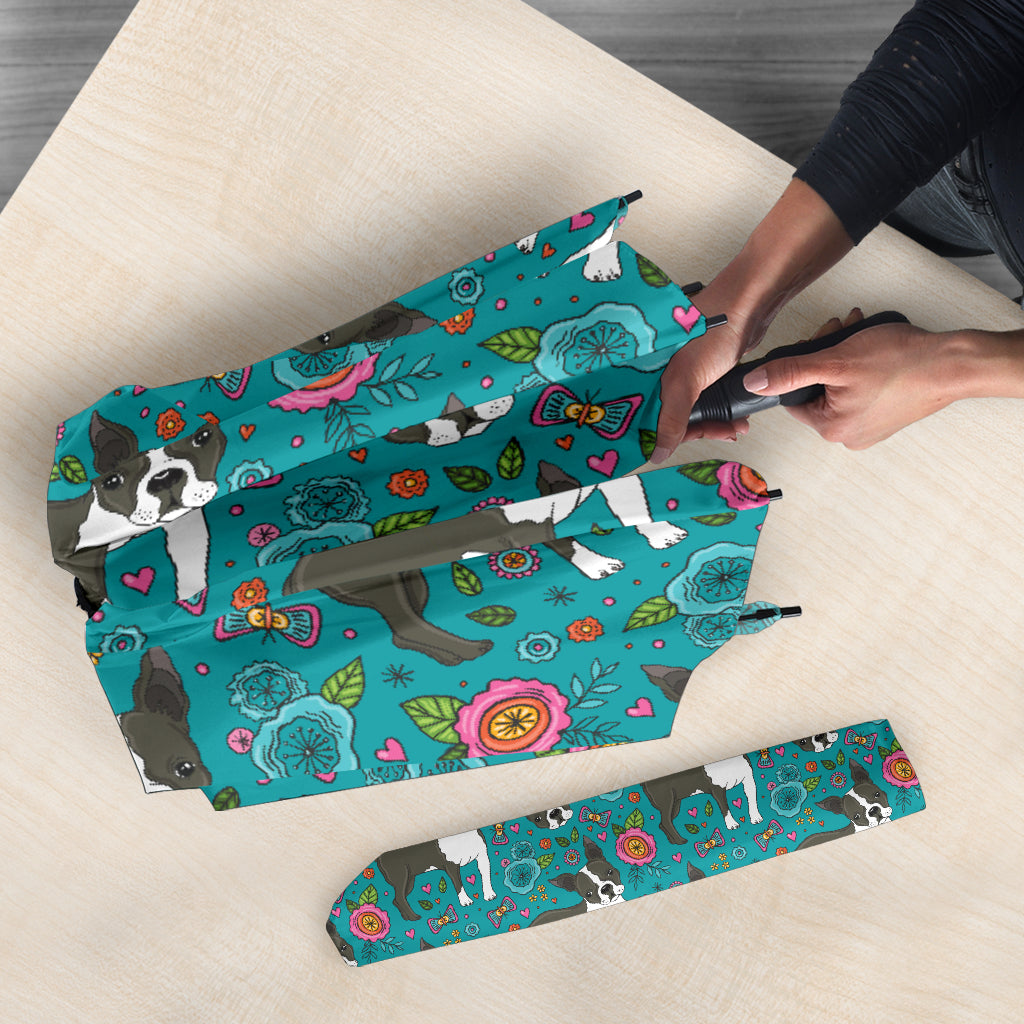 Boston Terrier Beautiful Flower Pattern Umbrella