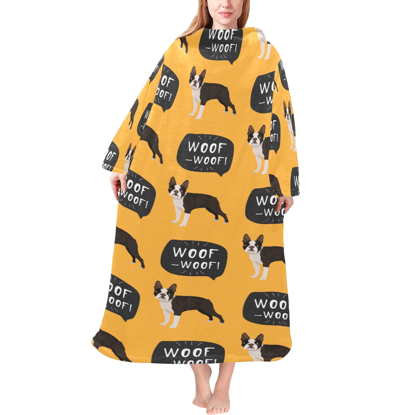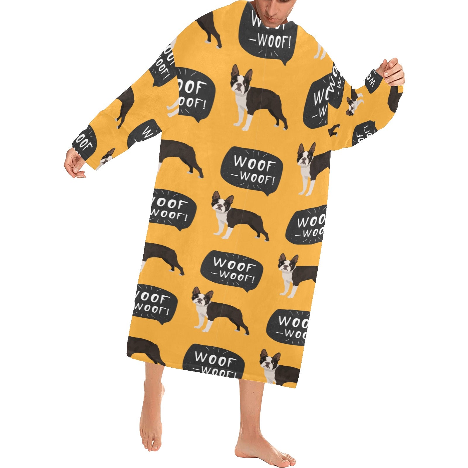 Boston terrier design pattern Blanket Robe with Sleeves