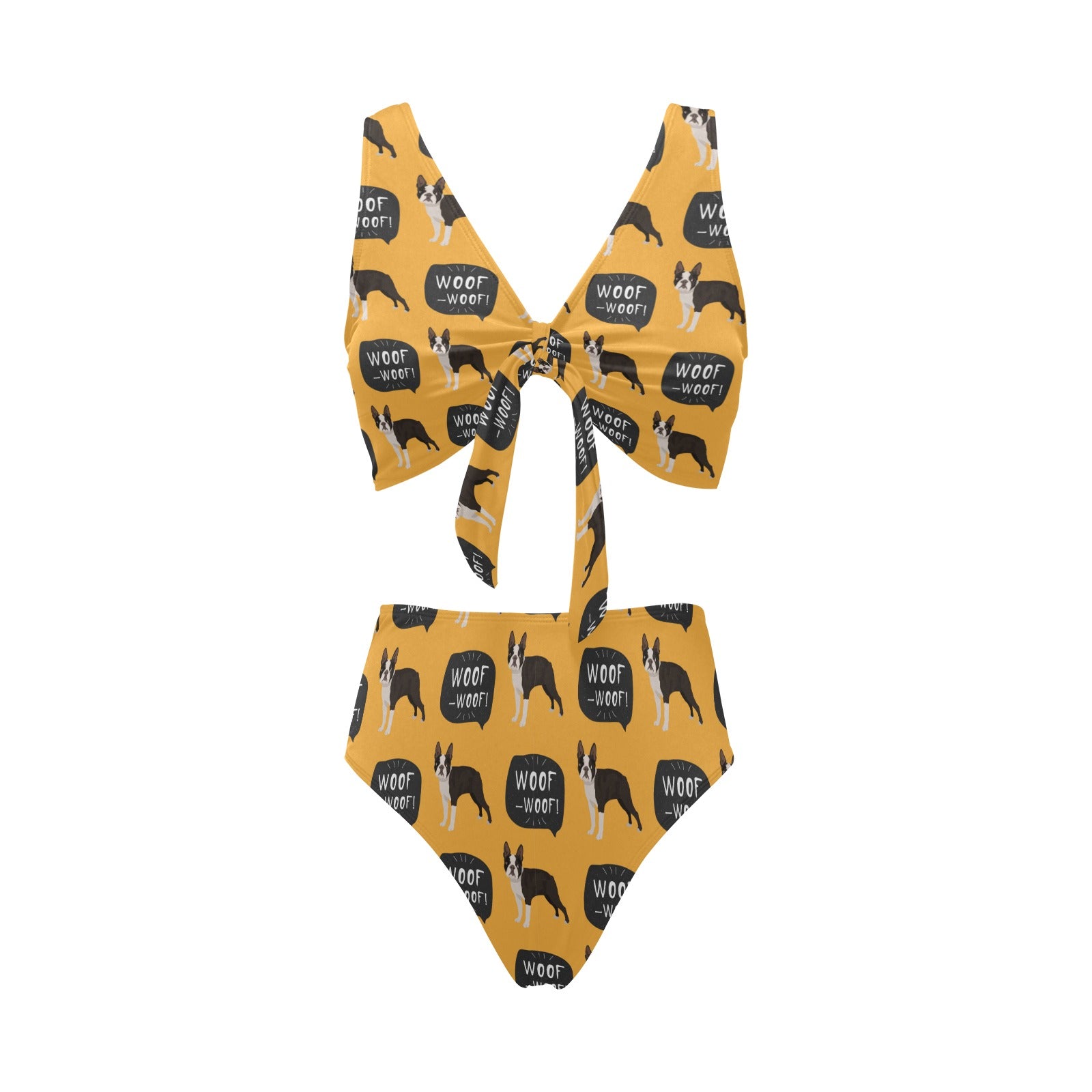 Boston terrier design pattern Chest Bowknot High Waisted Bikini Swimsuit