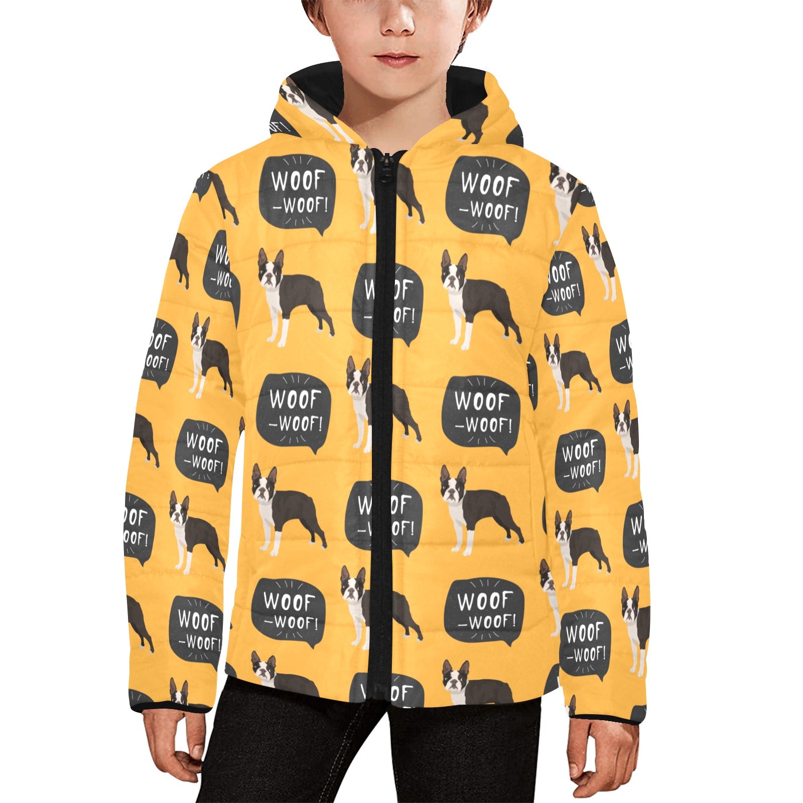 Boston terrier design pattern Kids' Boys' Girls' Padded Hooded Jacket