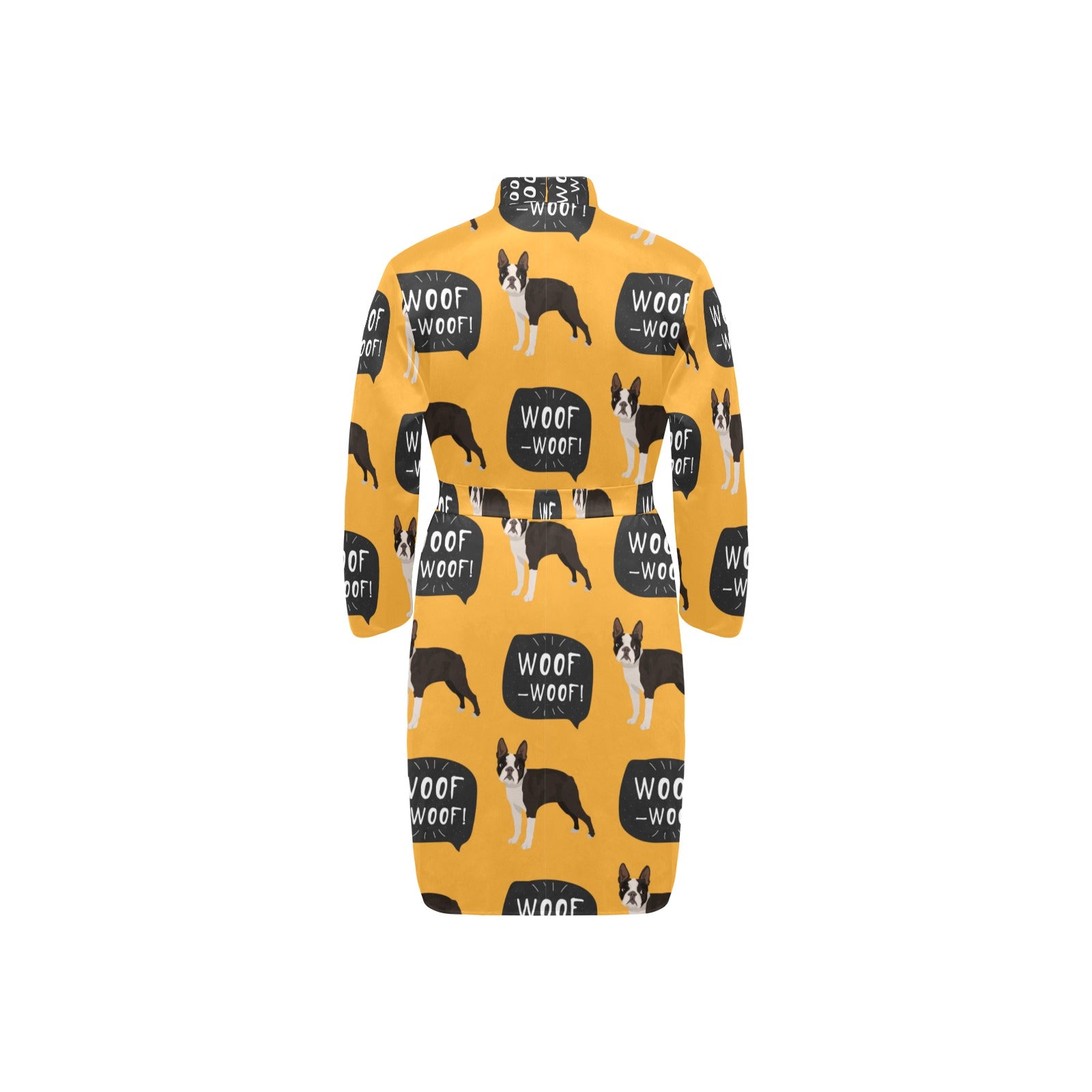 Boston terrier design pattern Men's Long Sleeve Belted Night Robe