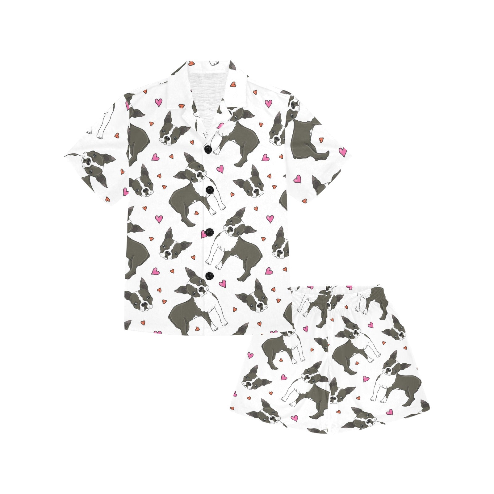 Boston terrier dog hearts vector pattern Kids' Boys' Girls' V-Neck Short Pajama Set