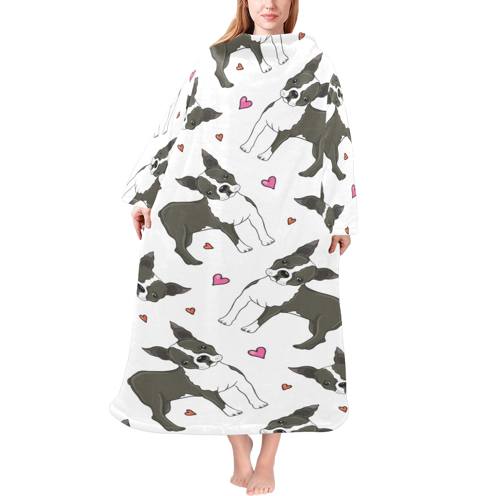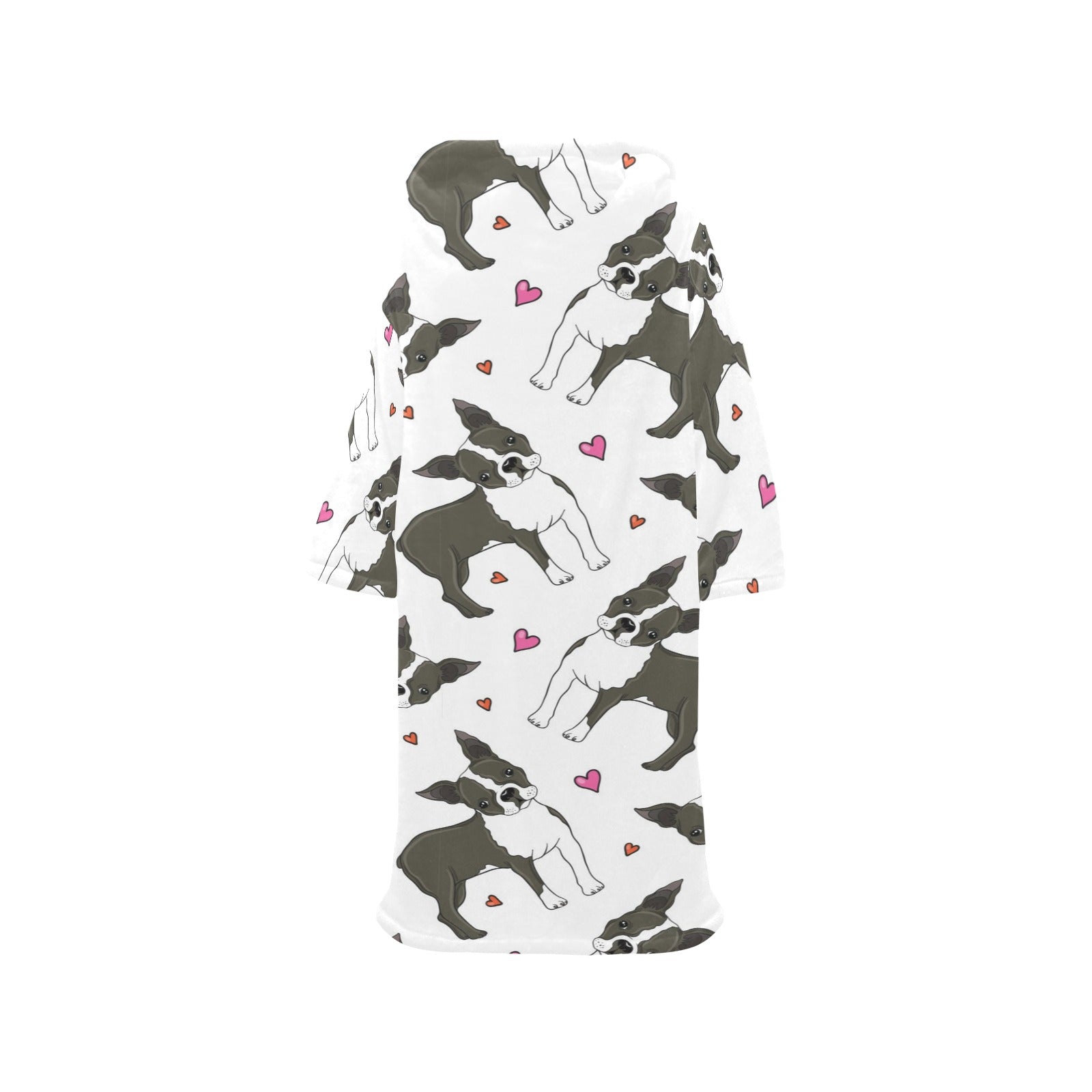 Boston terrier dog hearts vector pattern Blanket Robe with Sleeves