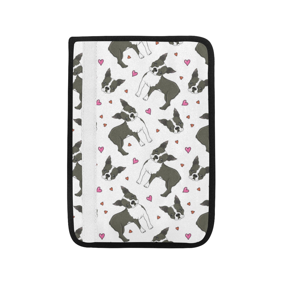 Boston terrier dog hearts vector pattern Car Seat Belt Cover is a uniqued design and limited item. It made to order, hand printed, and sewn with love in our factory.