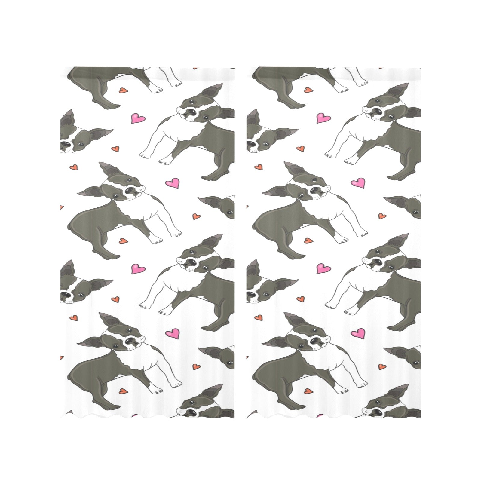 Boston terrier dog hearts vector pattern Gauze Curtain