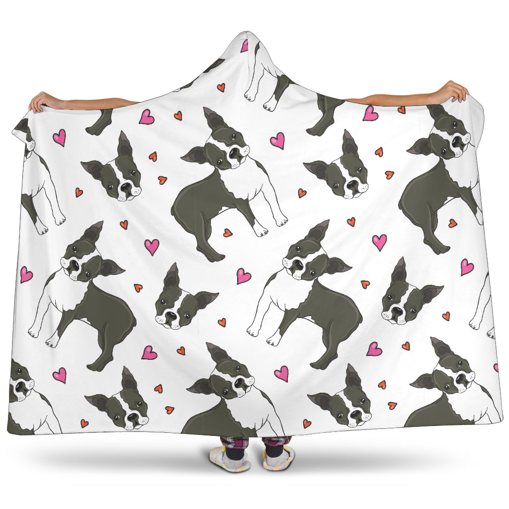 Boston terrier dog hearts vector pattern Hooded Blanket are custom-made-to-order and handcrafted to the highest quality standards.