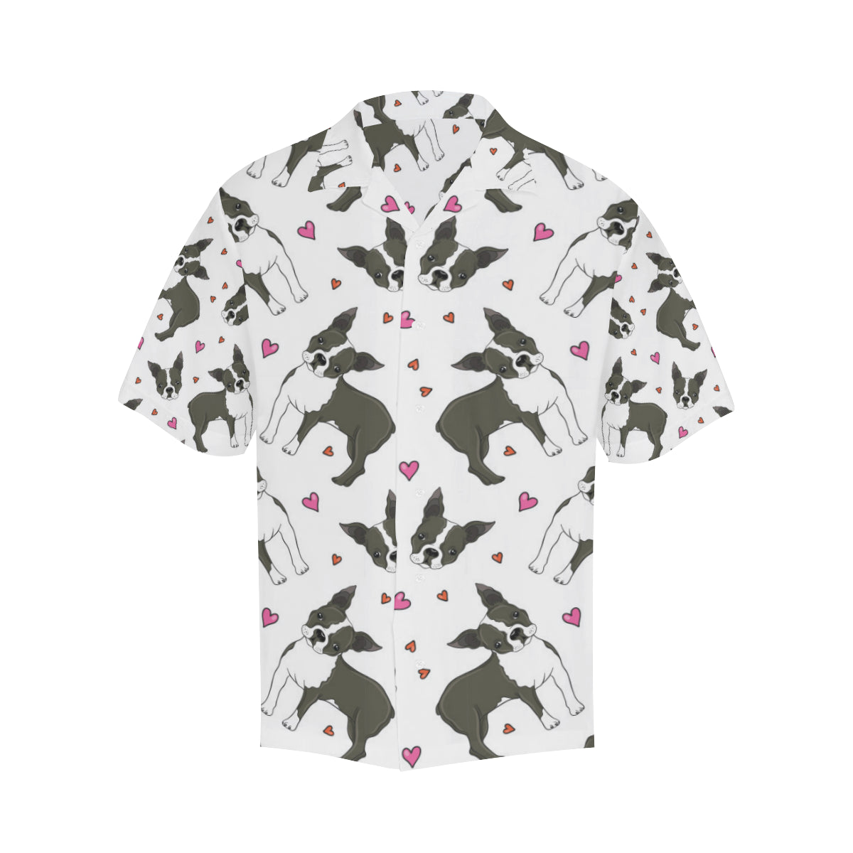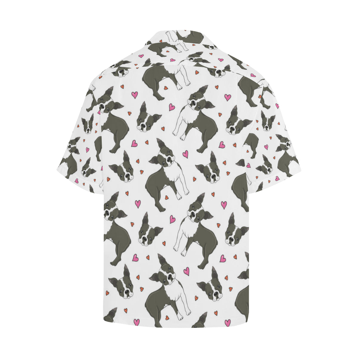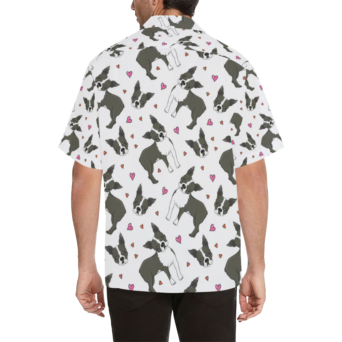 Boston terrier dog hearts vector pattern Men's All Over Print Hawaiian Shirt is a uniqued design and limited item. It made to order, hand printed, and sewn with love in our factory.