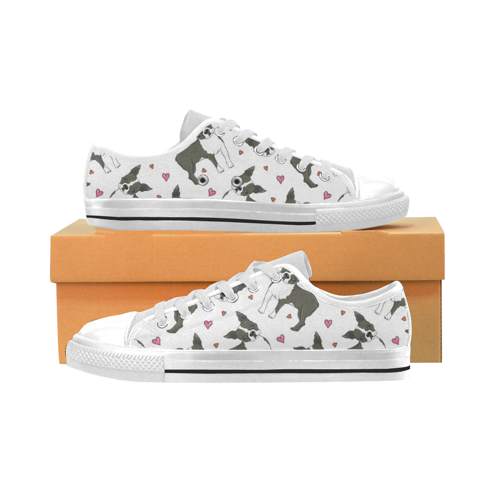 Boston terrier dog hearts vector pattern Men's Low Top Shoes White
