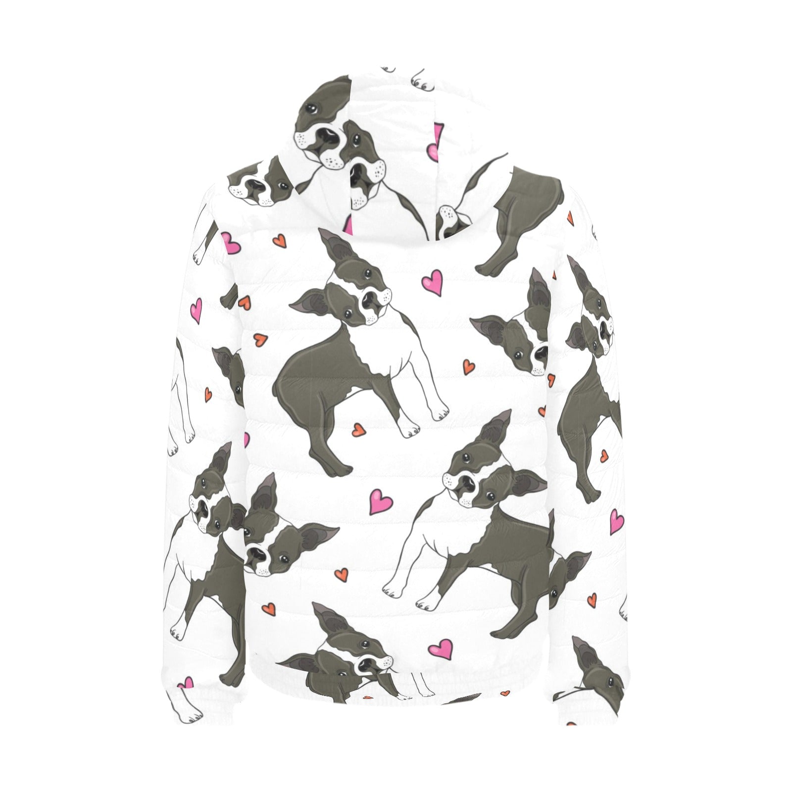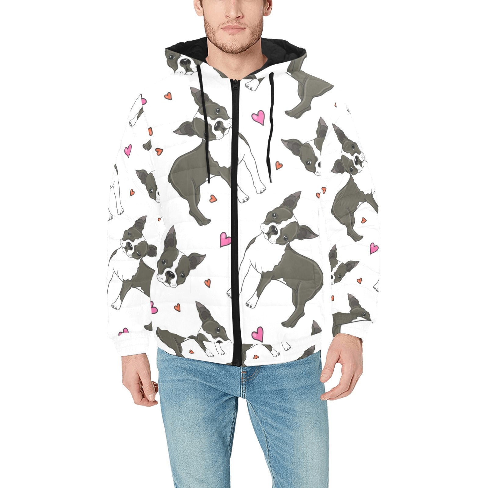 Boston terrier dog hearts vector pattern Men's Padded Hooded Jacket