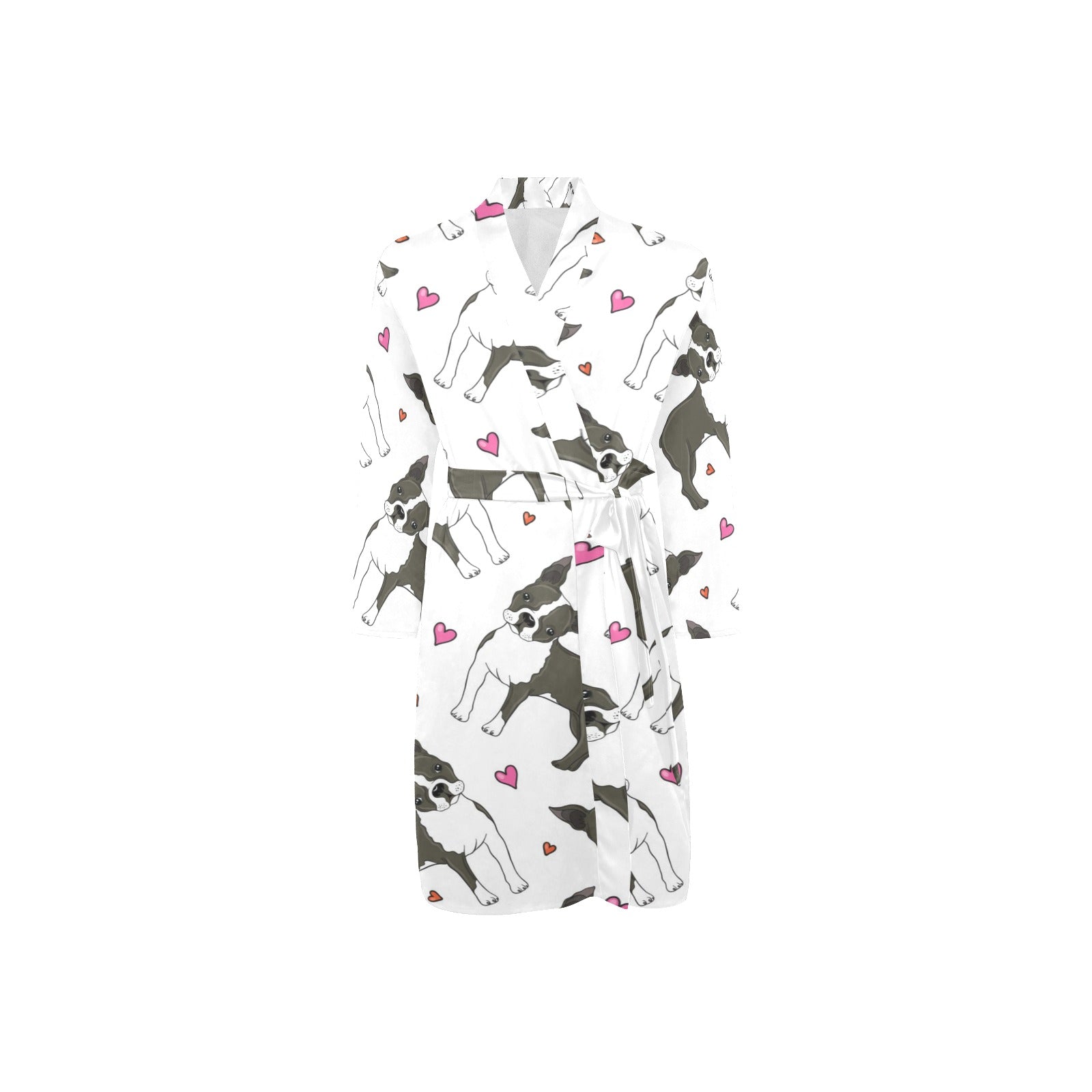Boston terrier dog hearts vector pattern Men's Long Sleeve Belted Night Robe