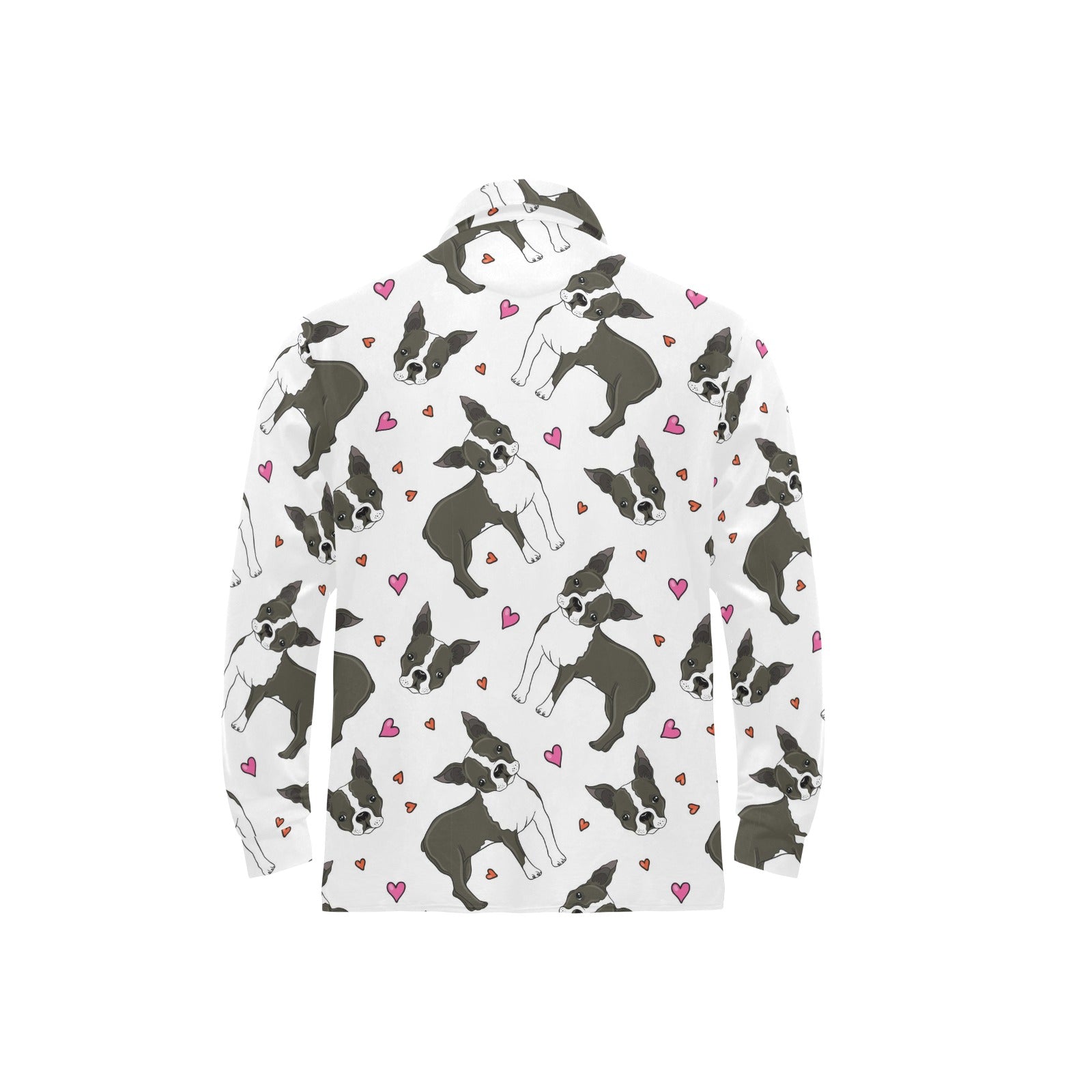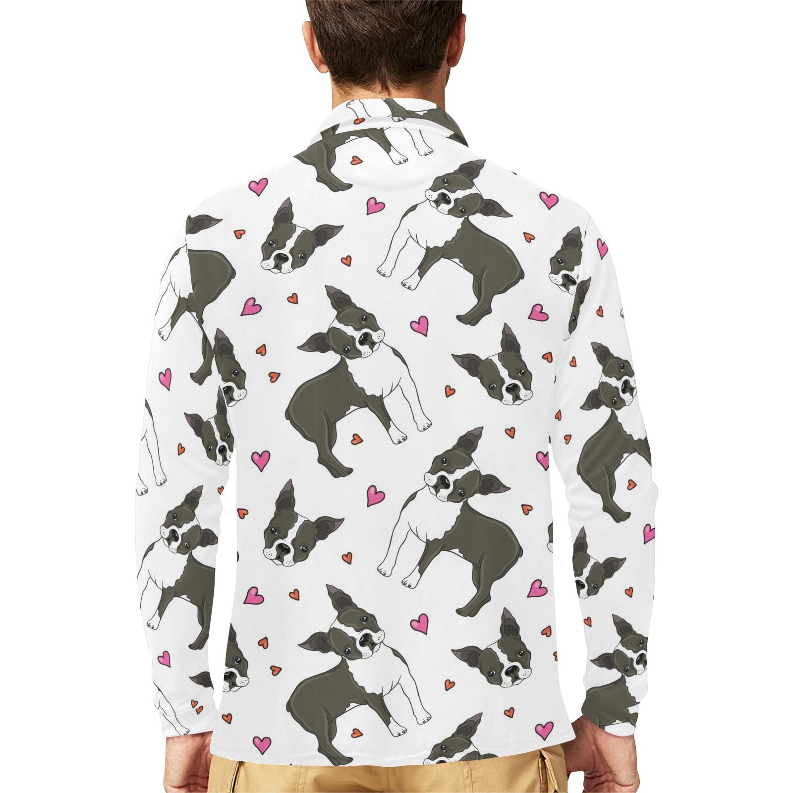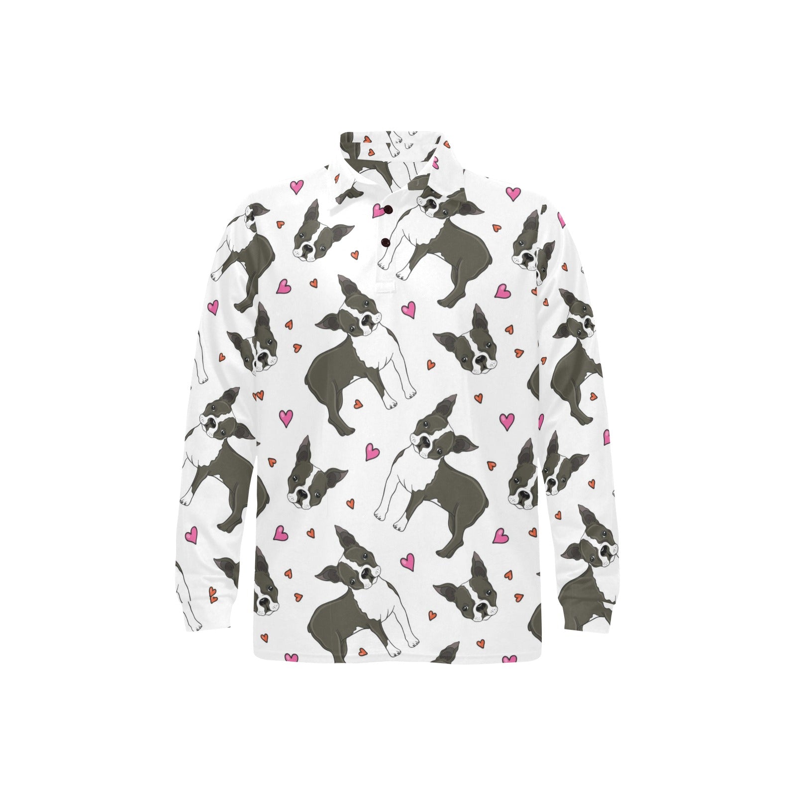 Boston terrier dog hearts vector pattern Men's Long Sleeve Polo Shirt