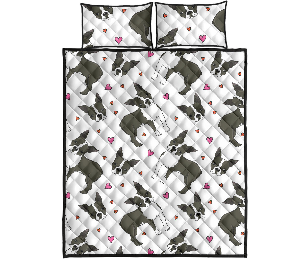 Boston terrier dog hearts vector pattern Quilt Bed Set