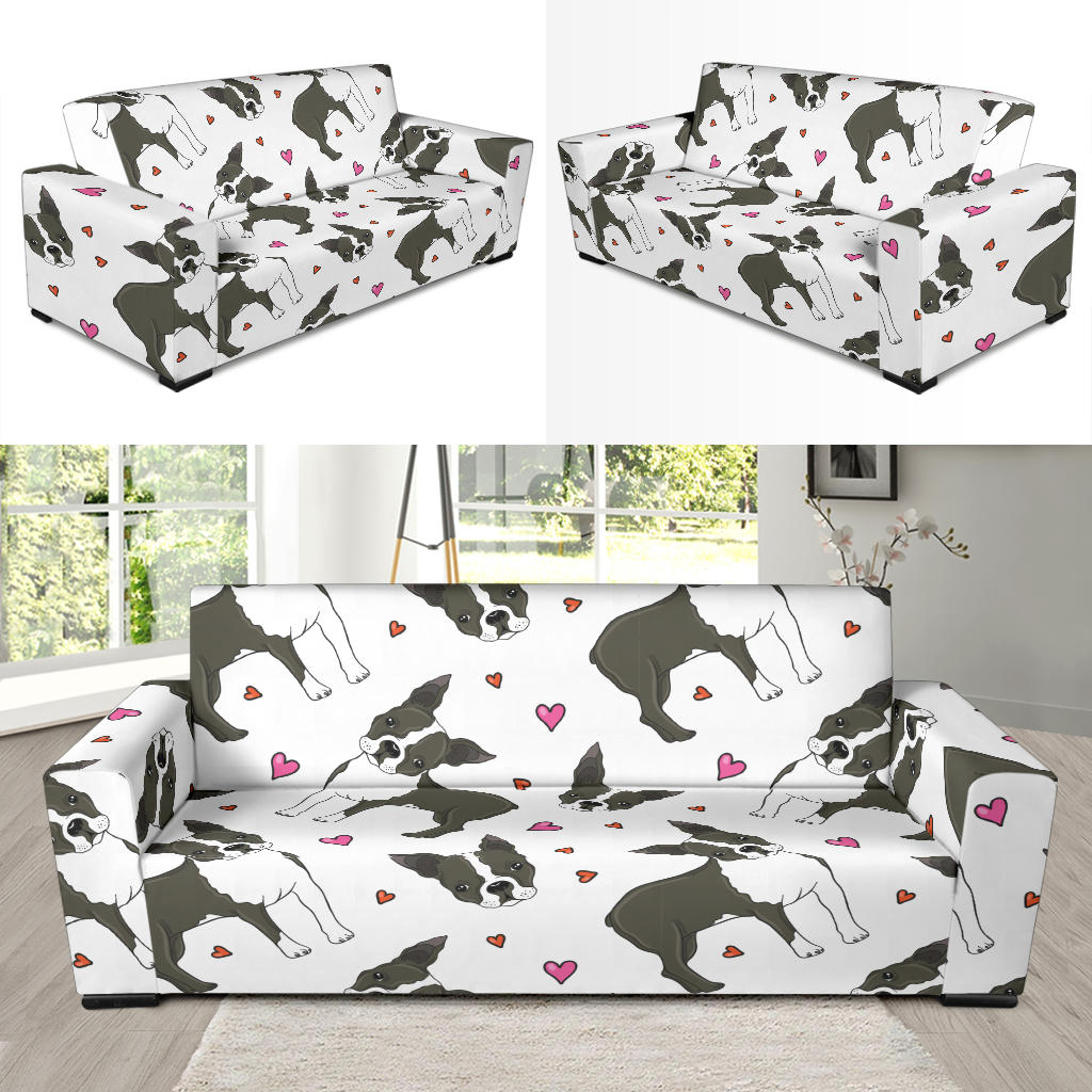 Boston Terrier Dog Hearts Vector Pattern Sofa Slipcover