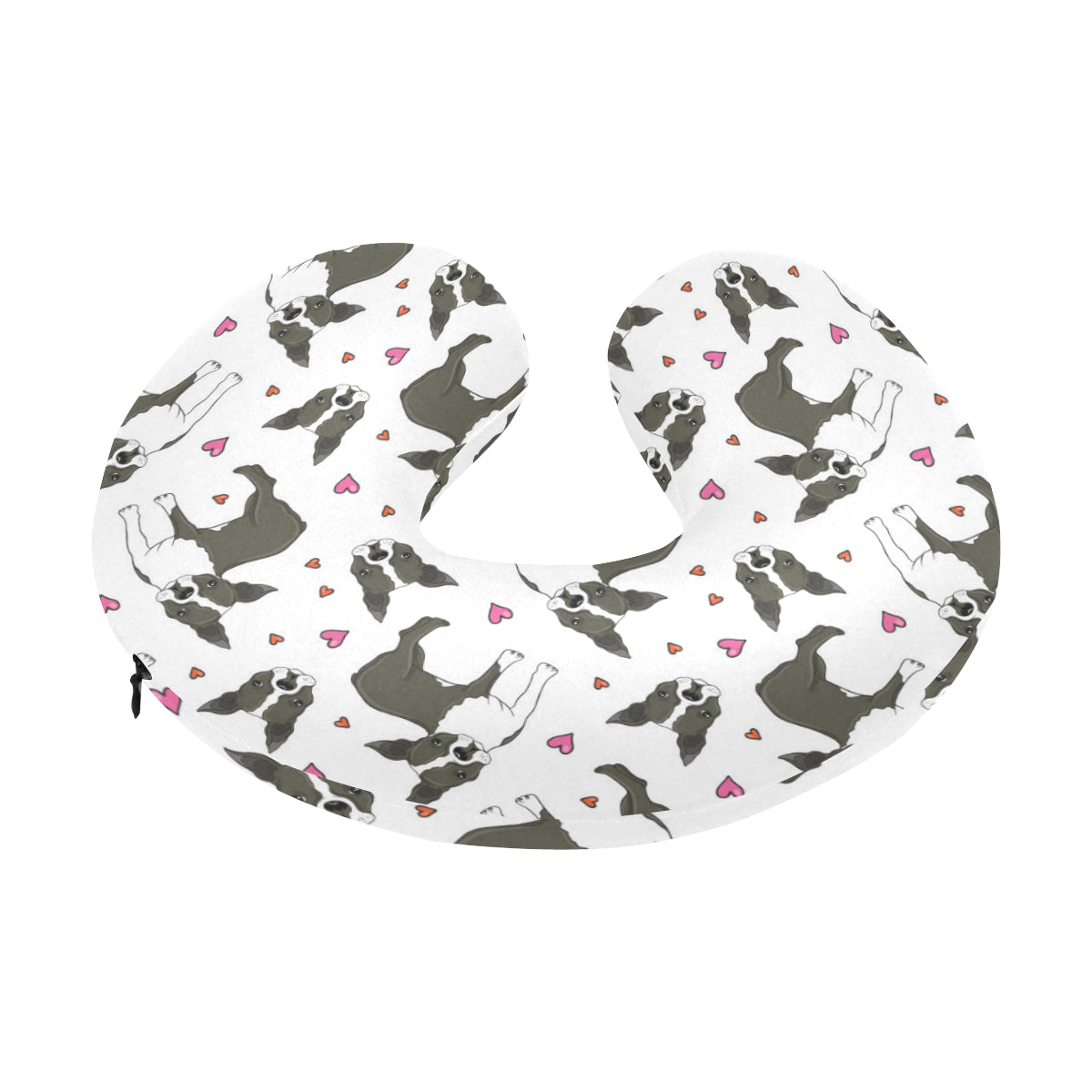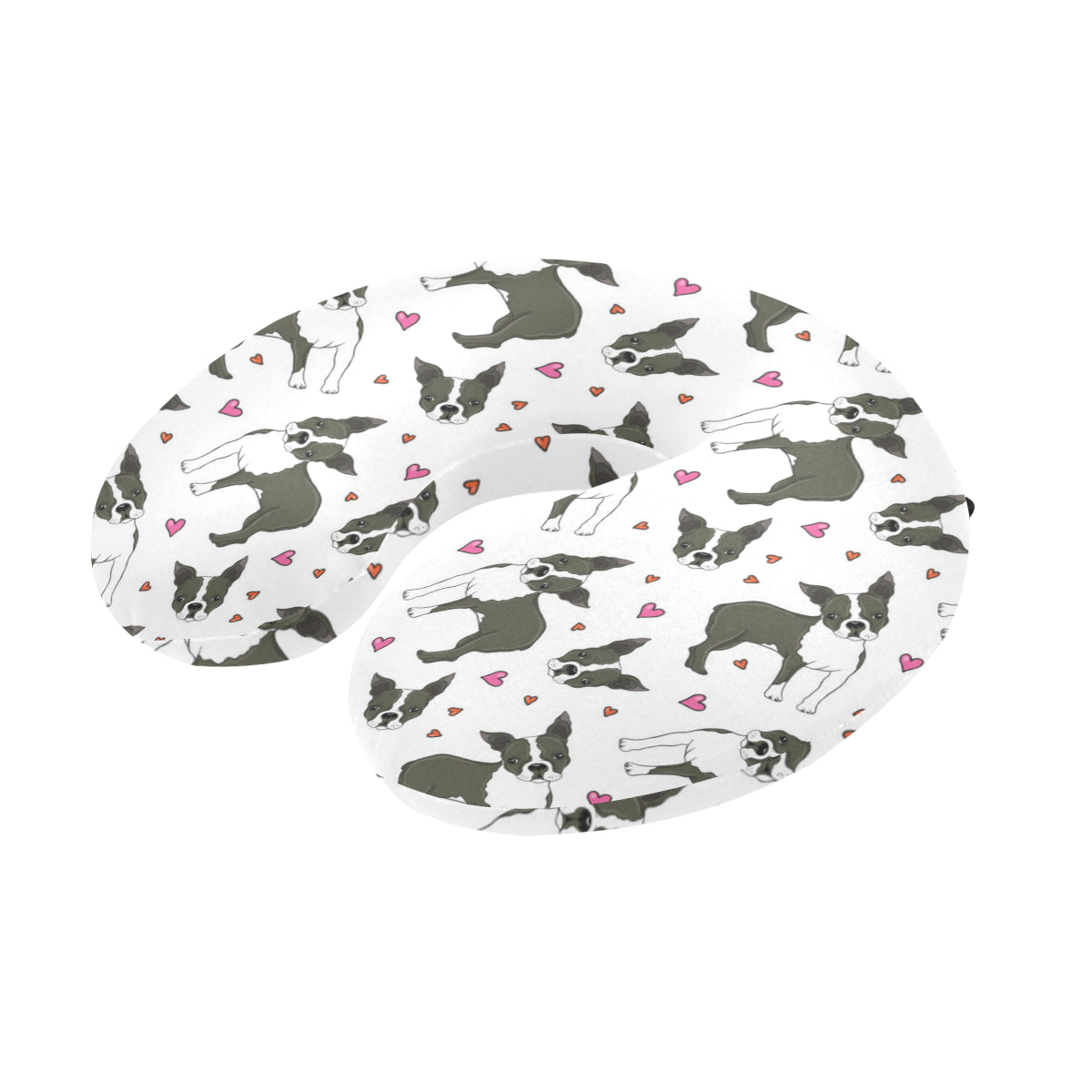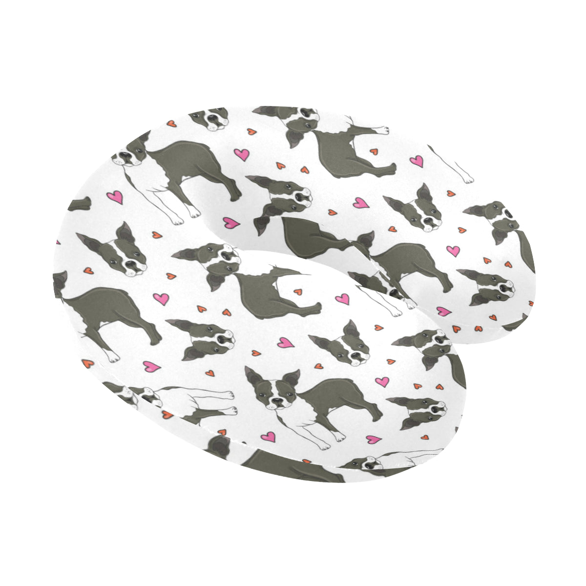 Boston terrier dog hearts vector pattern U-Shaped Travel Neck Pillow
