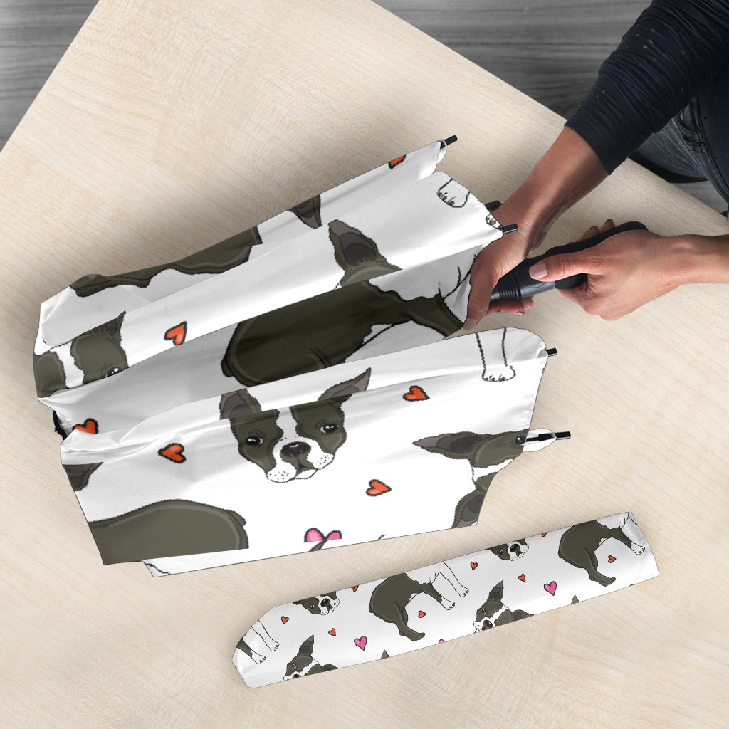Boston Terrier Dog Hearts Vector Pattern Umbrella